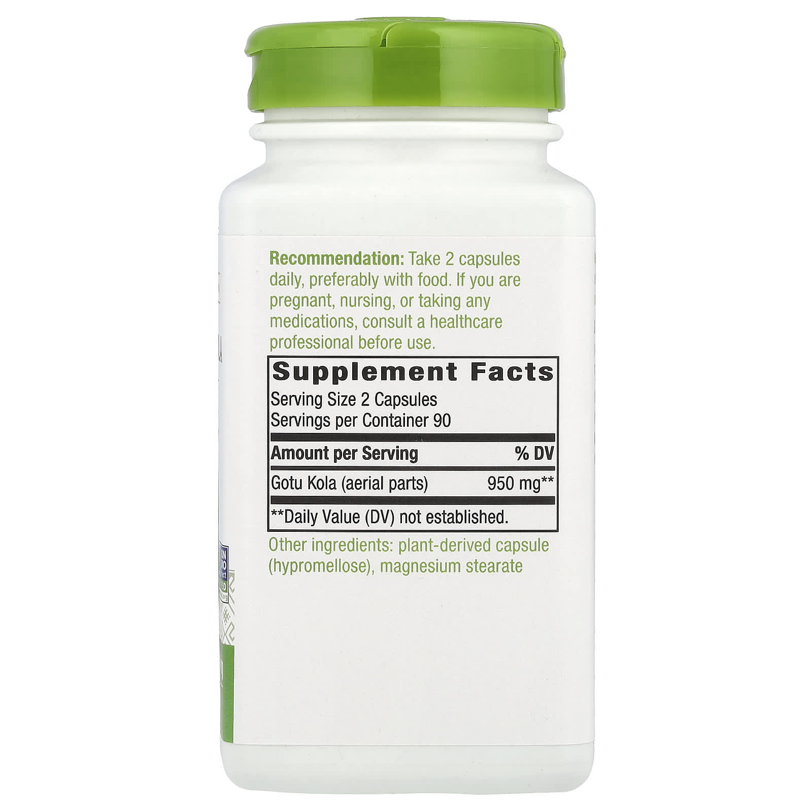 *Some information on the Nature's Way, Gotu Kola Herb, 950 mg , 180 Vegan Capsules (475 mg per Capsule)label may be missing, or it may have been written incorrectly. We work hard to keep the information accurate & up to date. Please let us know if you discover any errors.