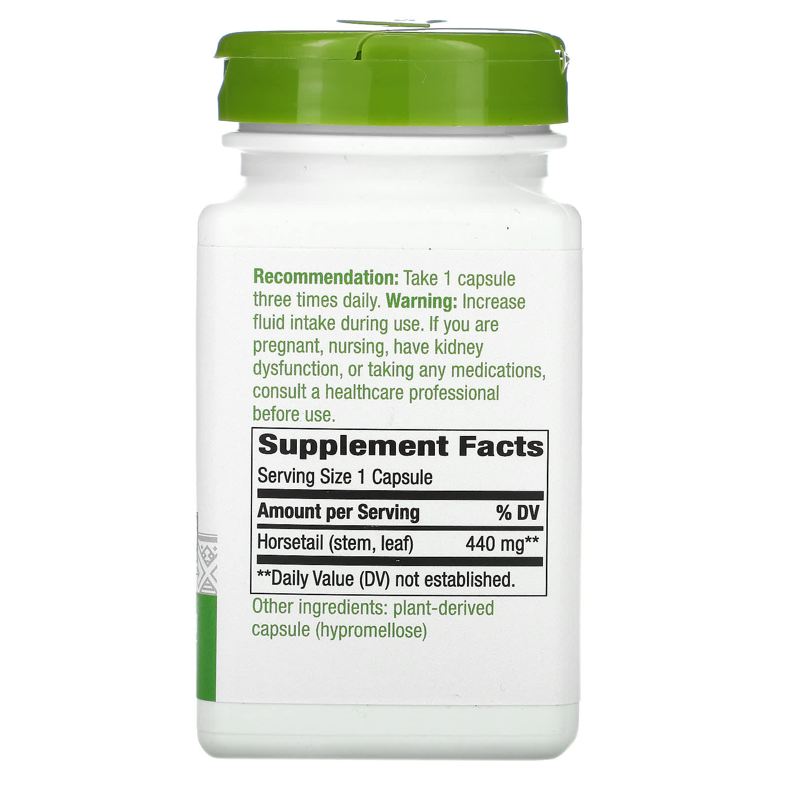 *Some information on the Nature's Way, Horsetail Grass, 440 mg, 100 Vegan Capsuleslabel may be missing, or it may have been written incorrectly. We work hard to keep the information accurate & up to date. Please let us know if you discover any errors.