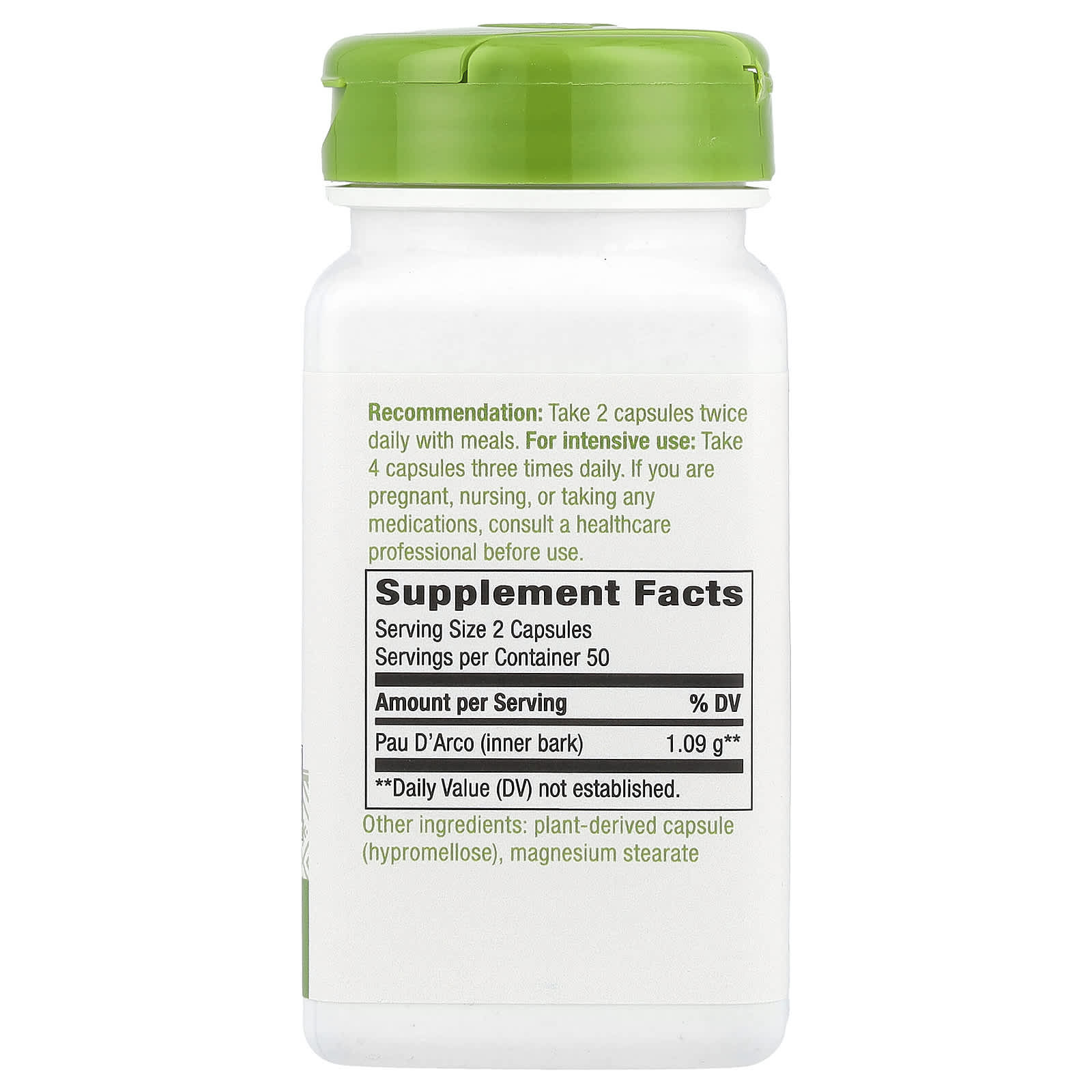 *Some information on the Nature's Way, Pau D'Arco Inner Bark, 1,090 mg, 100 Vegan Capsules (545 mg Per Capsule)label may be missing, or it may have been written incorrectly. We work hard to keep the information accurate & up to date. Please let us know if you discover any errors.