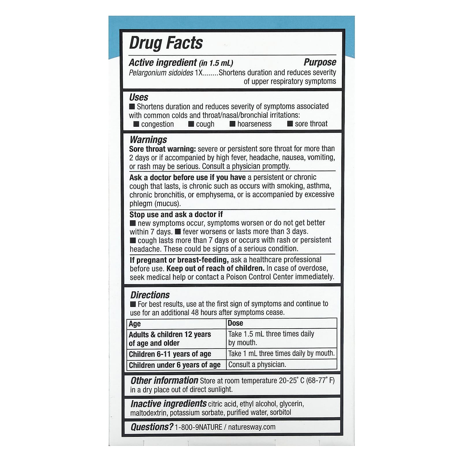 *Some information on the Nature's Way, Umcka, ColdCare, 1 fl oz (30 ml)label may be missing, or it may have been written incorrectly. We work hard to keep the information accurate & up to date. Please let us know if you discover any errors.