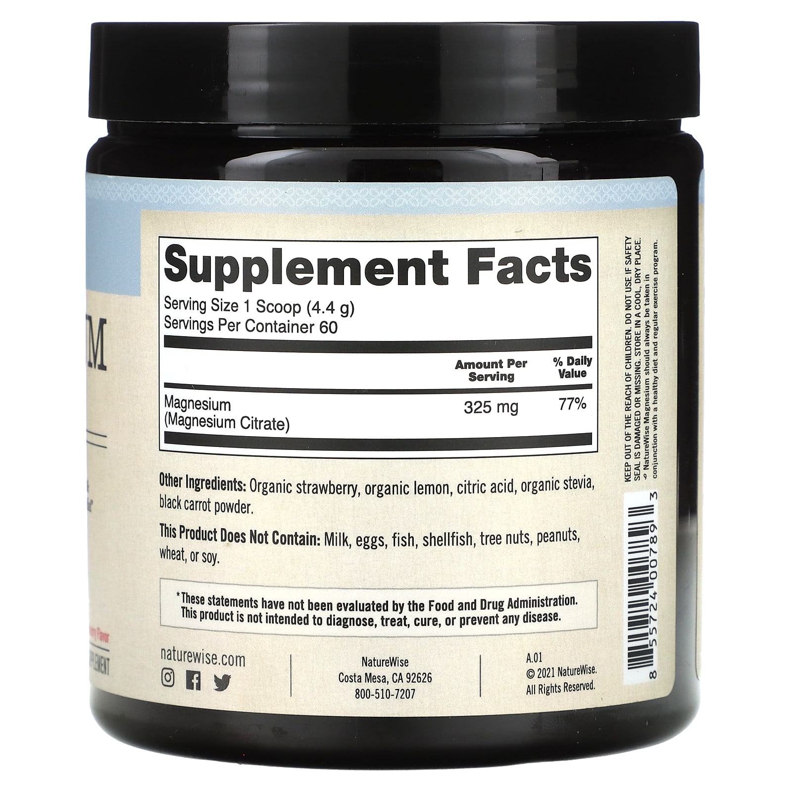 *Some information on the NatureWise, Magnesium, Strawberry, 325 mg, 9.3 oz (264 g)label may be missing, or it may have been written incorrectly. We work hard to keep the information accurate & up to date. Please let us know if you discover any errors.