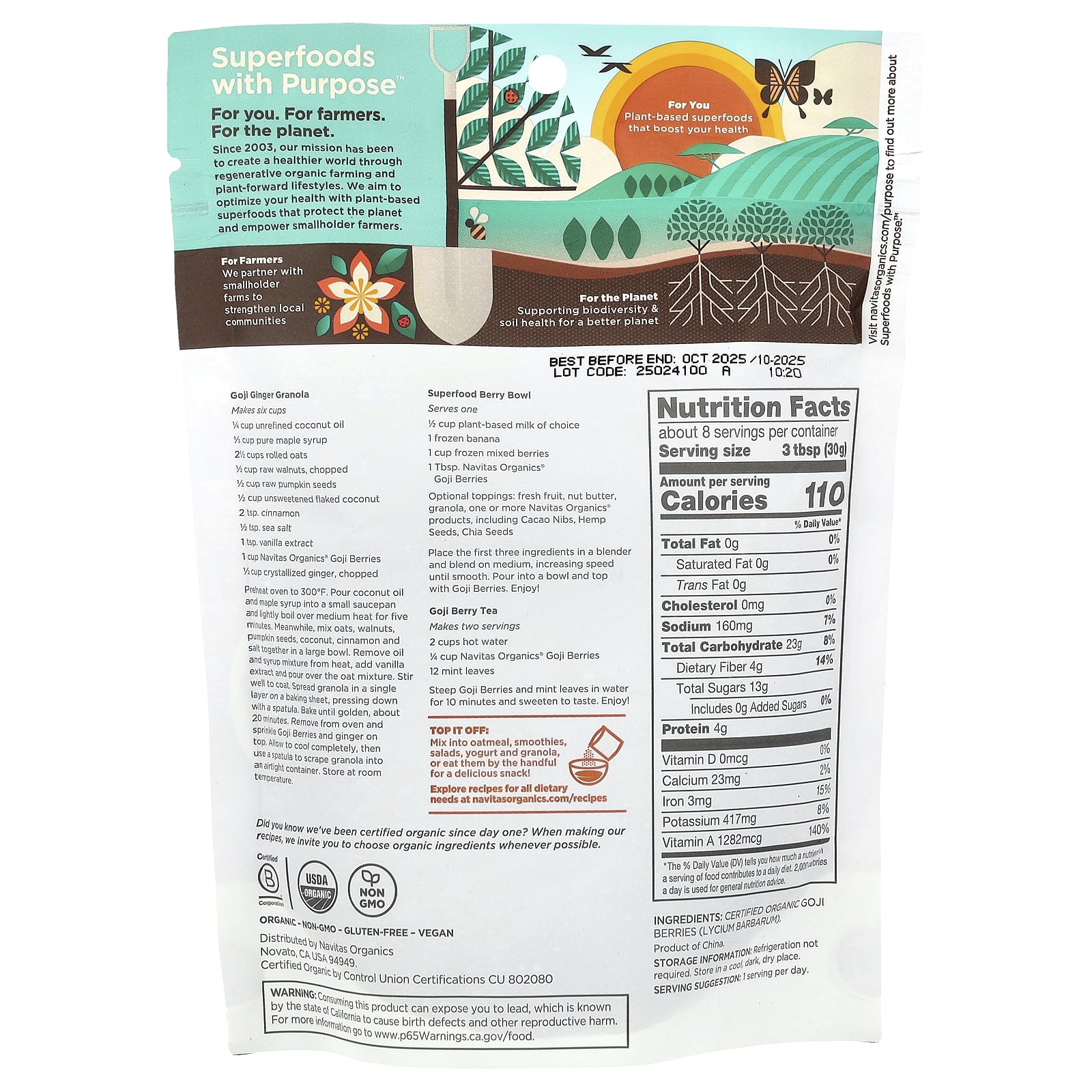 *Some information on the Navitas Organics, Organic Goji Berries, 8 oz (227g)label may be missing, or it may have been written incorrectly. We work hard to keep the information accurate & up to date. Please let us know if you discover any errors.