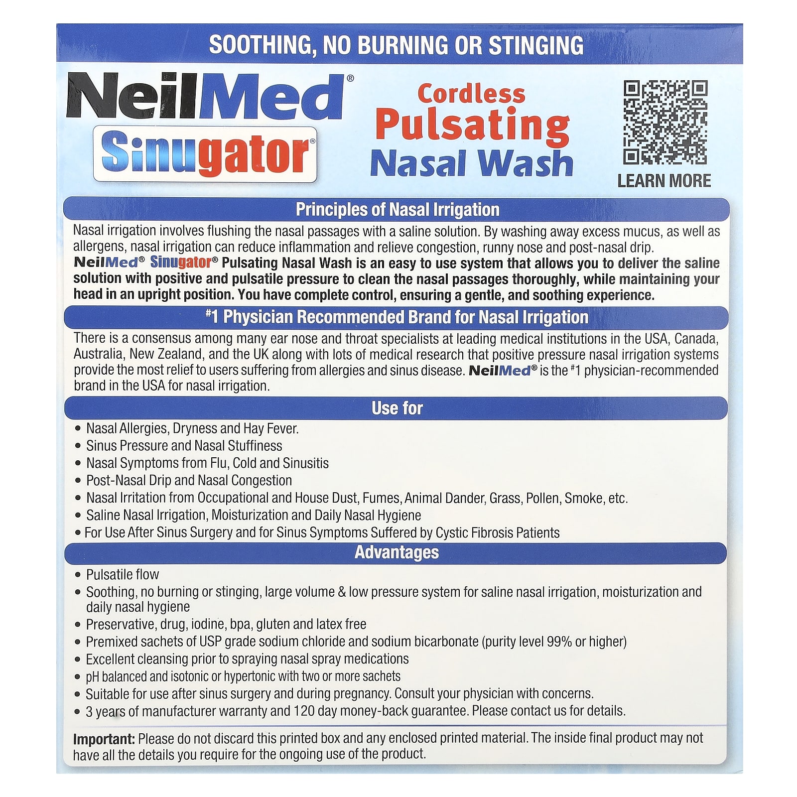 *Some information on the NeilMed, Sinugator, Cordless Pulsating Nasal Wash, 3 Piece Setlabel may be missing, or it may have been written incorrectly. We work hard to keep the information accurate & up to date. Please let us know if you discover any errors.