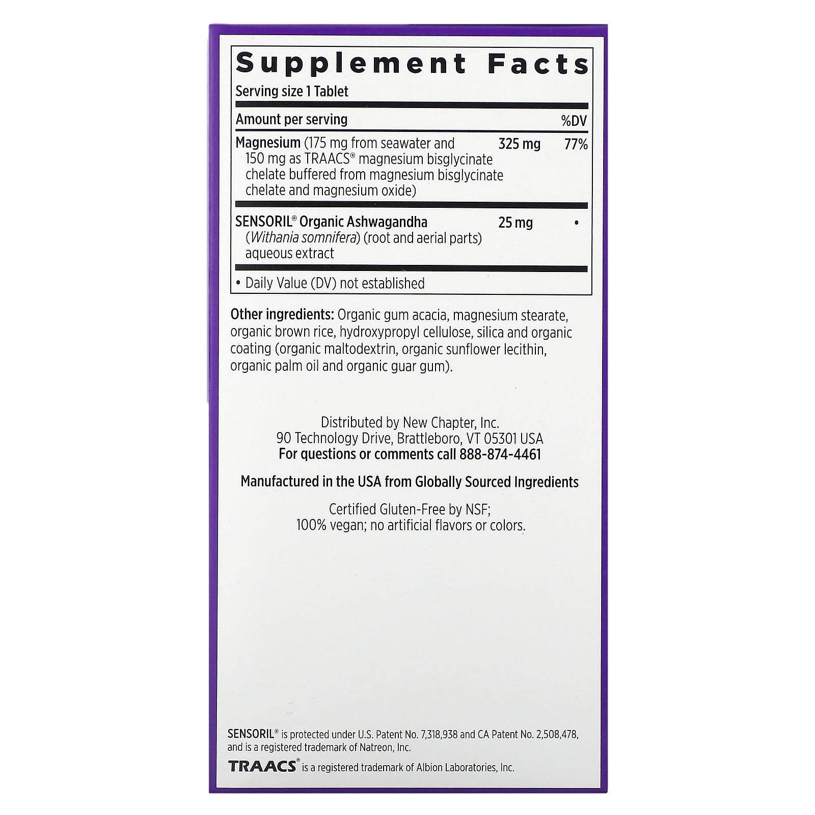 *Some information on the New Chapter, Magnesium + Ashwagandha , 90 Vegan Tabletslabel may be missing, or it may have been written incorrectly. We work hard to keep the information accurate & up to date. Please let us know if you discover any errors.
