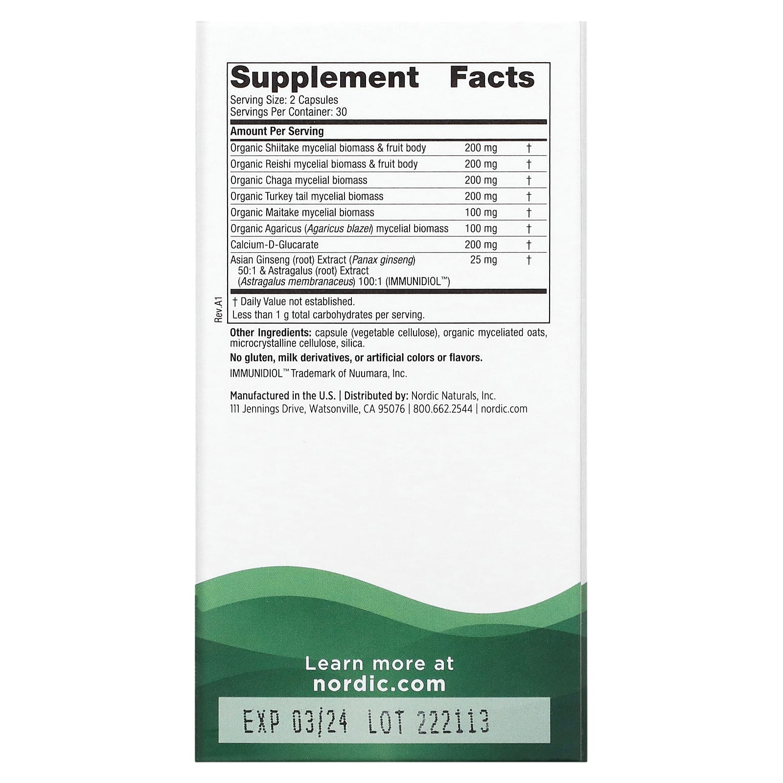 *Some information on the Nordic Naturals, Immune, Mushroom Complex, 60 Capsuleslabel may be missing, or it may have been written incorrectly. We work hard to keep the information accurate & up to date. Please let us know if you discover any errors.