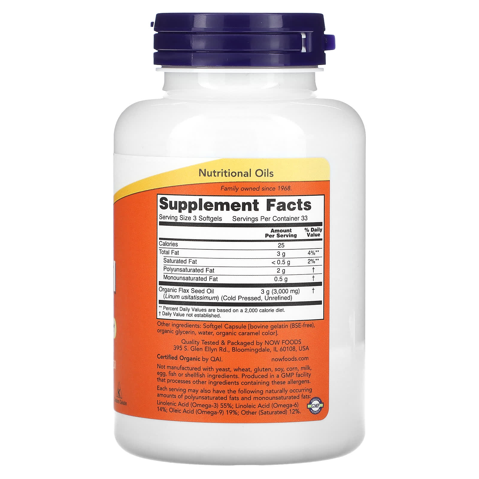 *Some information on the NOW Foods, Flax Oil, 1,000 mg, 100 Softgelslabel may be missing, or it may have been written incorrectly. We work hard to keep the information accurate & up to date. Please let us know if you discover any errors.