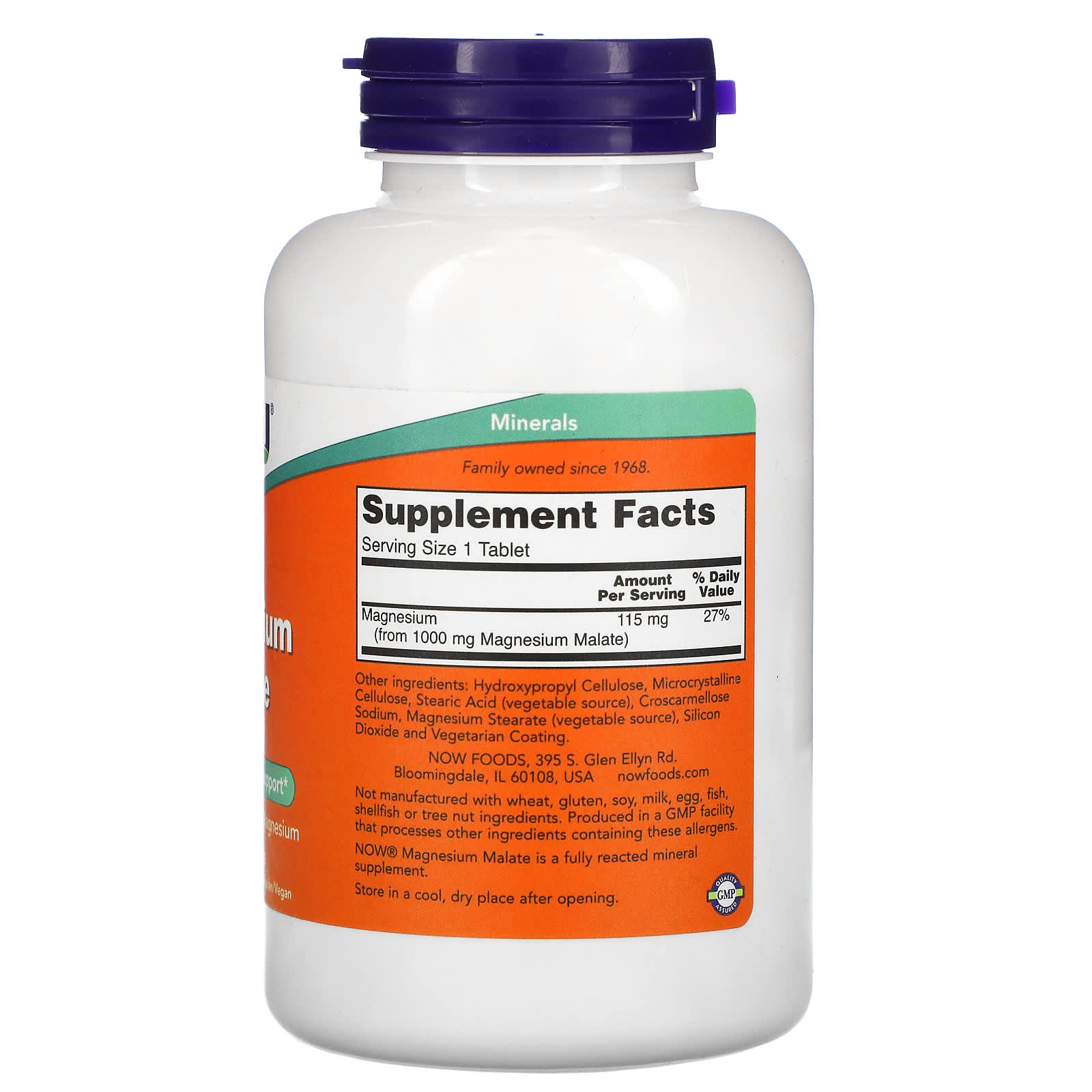 *Some information on the NOW Foods, Magnesium Malate, 1,000 mg, 180 Tabletslabel may be missing, or it may have been written incorrectly. We work hard to keep the information accurate & up to date. Please let us know if you discover any errors.