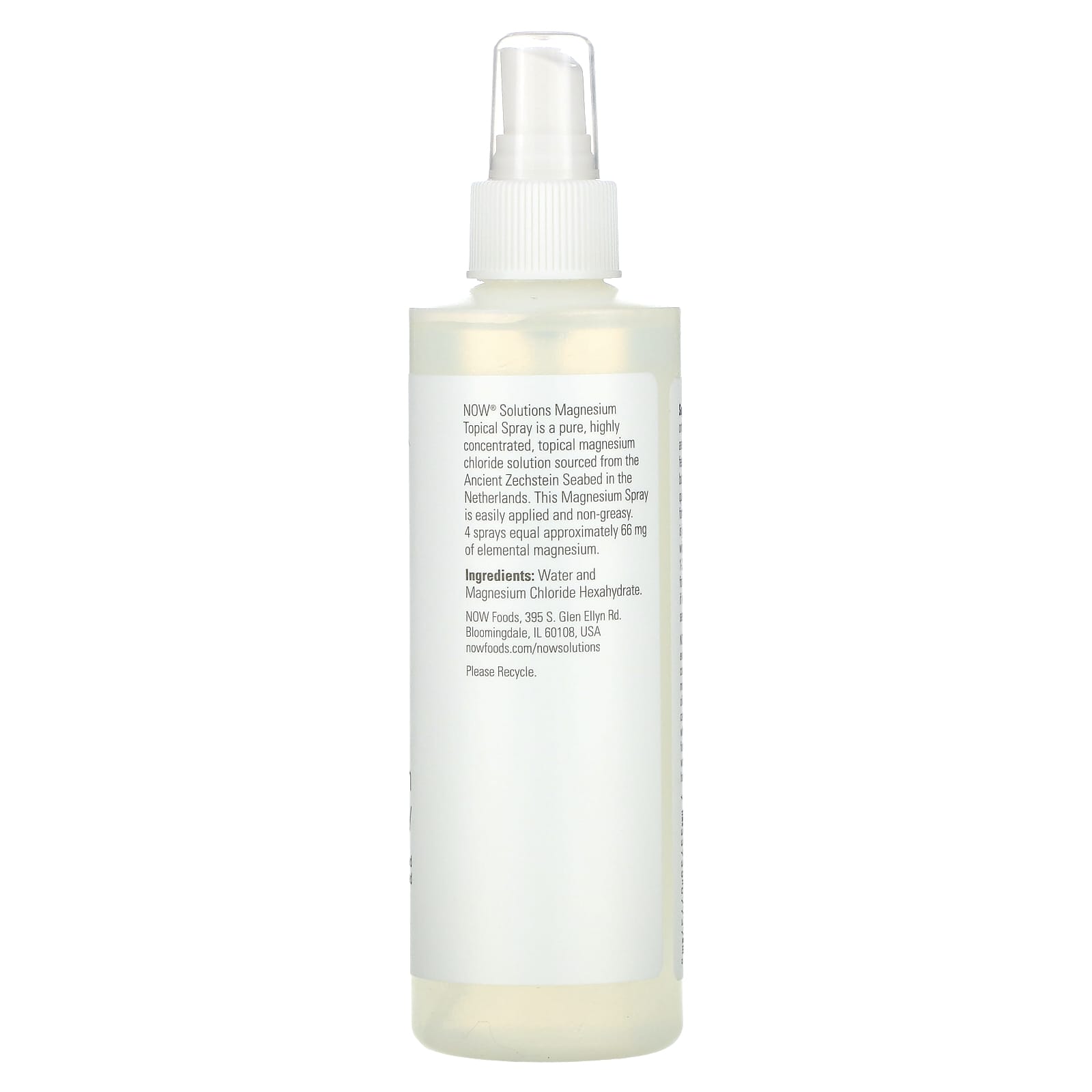 *Some information on the NOW Foods, Magnesium Topical Spray, 8 fl oz (237 ml)label may be missing, or it may have been written incorrectly. We work hard to keep the information accurate & up to date. Please let us know if you discover any errors.