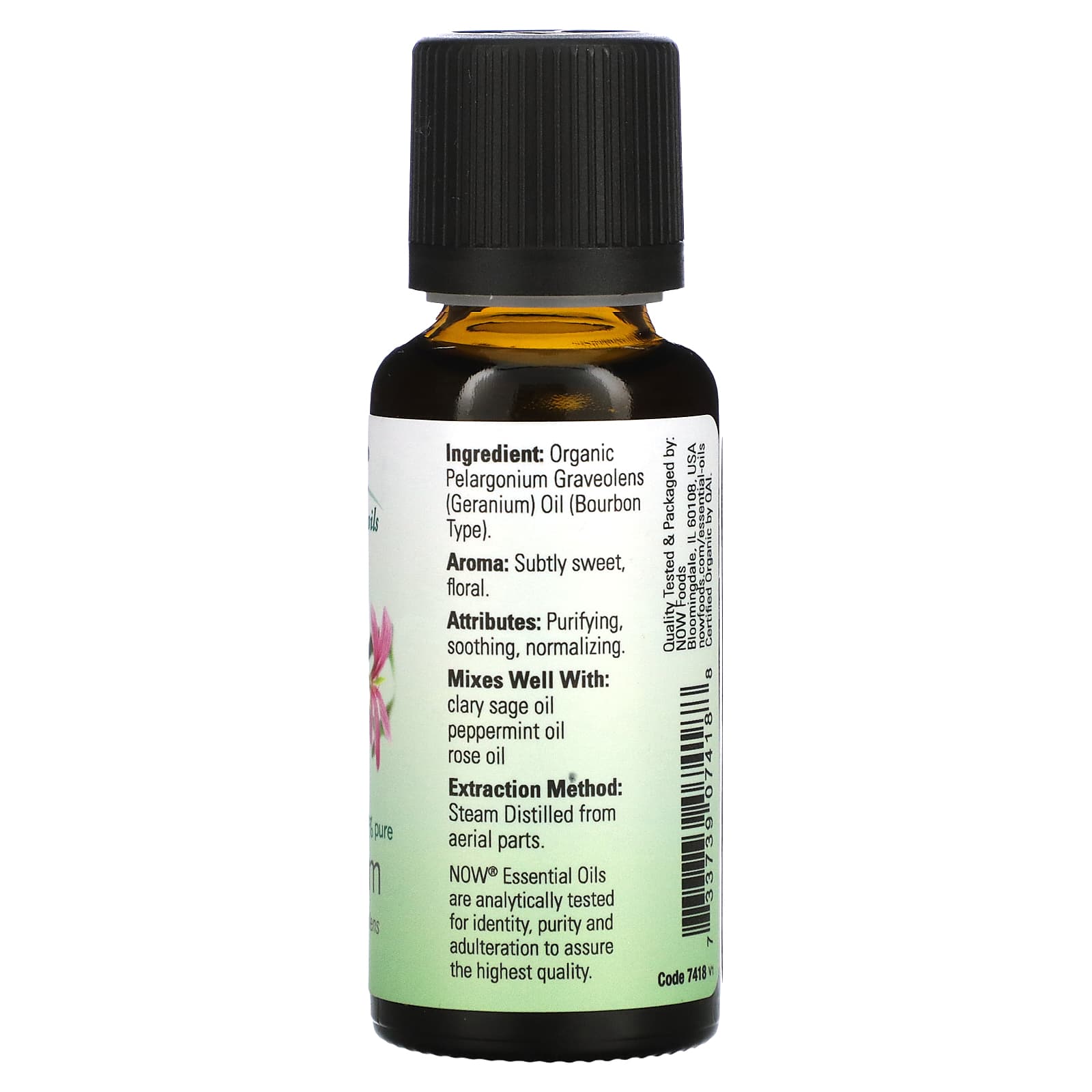 *Some information on the NOW Foods, Organic Essential Oils, Geranium, 1 fl oz (30 ml)label may be missing, or it may have been written incorrectly. We work hard to keep the information accurate & up to date. Please let us know if you discover any errors.