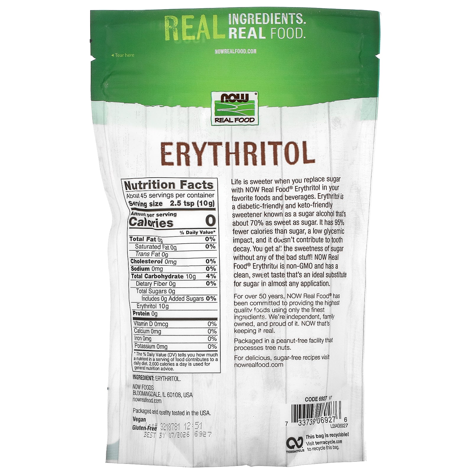 *Some information on the NOW Foods, Real Food, Erythritol, 1 lb (454 g)label may be missing, or it may have been written incorrectly. We work hard to keep the information accurate & up to date. Please let us know if you discover any errors.