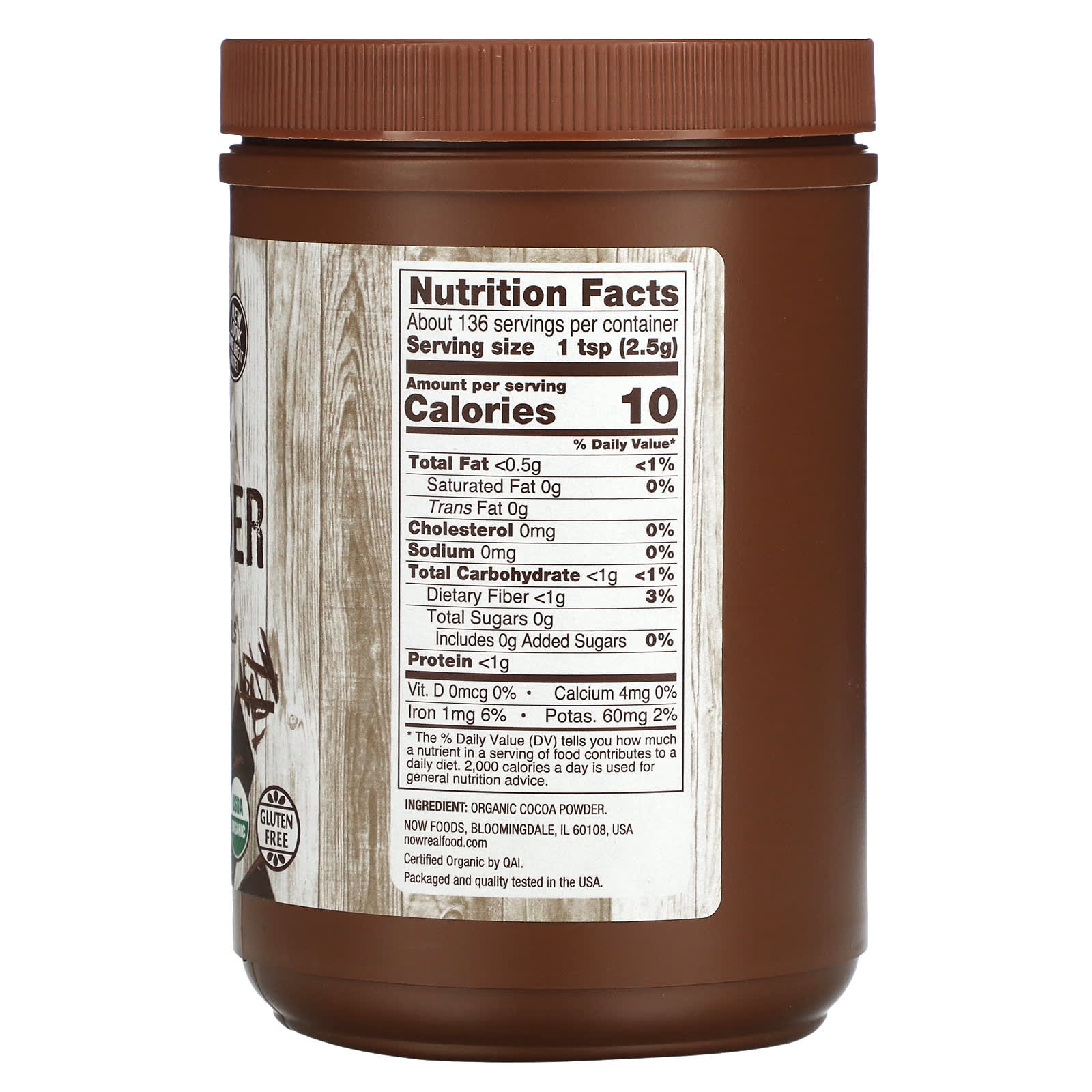 *Some information on the NOW Foods, Real Food, Organic Cocoa Powder, 12 oz (340 g)label may be missing, or it may have been written incorrectly. We work hard to keep the information accurate & up to date. Please let us know if you discover any errors.