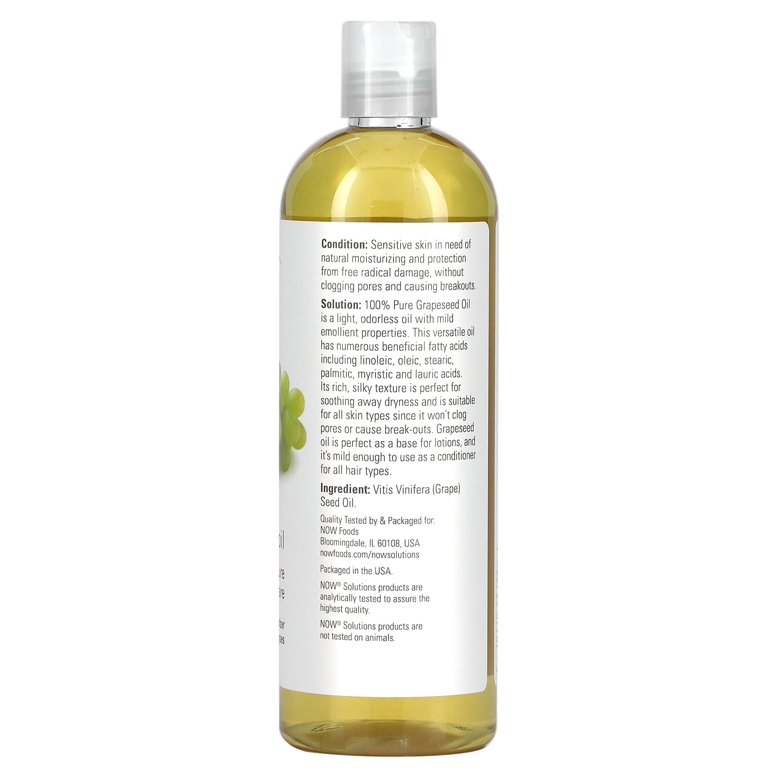 *Some information on the NOW Foods, Solutions, Grapeseed Oil, 16 fl oz (473 ml)label may be missing, or it may have been written incorrectly. We work hard to keep the information accurate & up to date. Please let us know if you discover any errors.