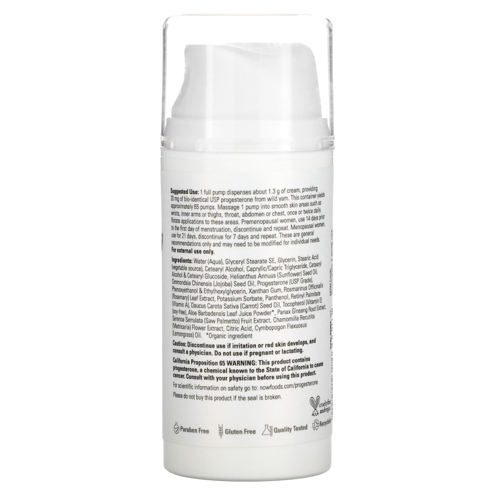 *Some information on the NOW Foods, Solutions, Progesterone from Wild Yam, Balancing Skin Cream, Unscented, 20 mg, 3 oz (85 g)label may be missing, or it may have been written incorrectly. We work hard to keep the information accurate & up to date. Please let us know if you discover any errors.