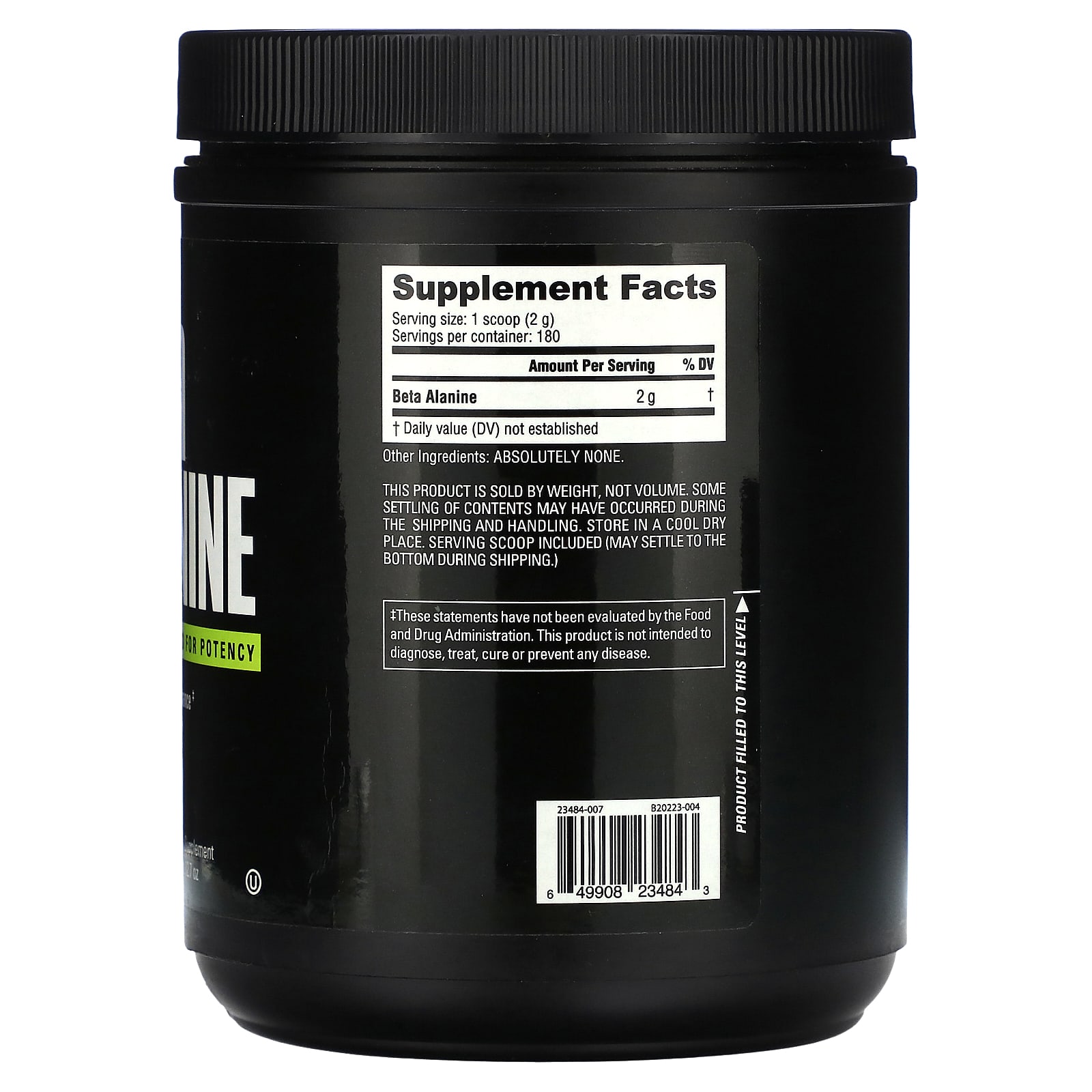 *Some information on the NutraBio, Beta Alanine, 12.7 ozlabel may be missing, or it may have been written incorrectly. We work hard to keep the information accurate & up to date. Please let us know if you discover any errors.