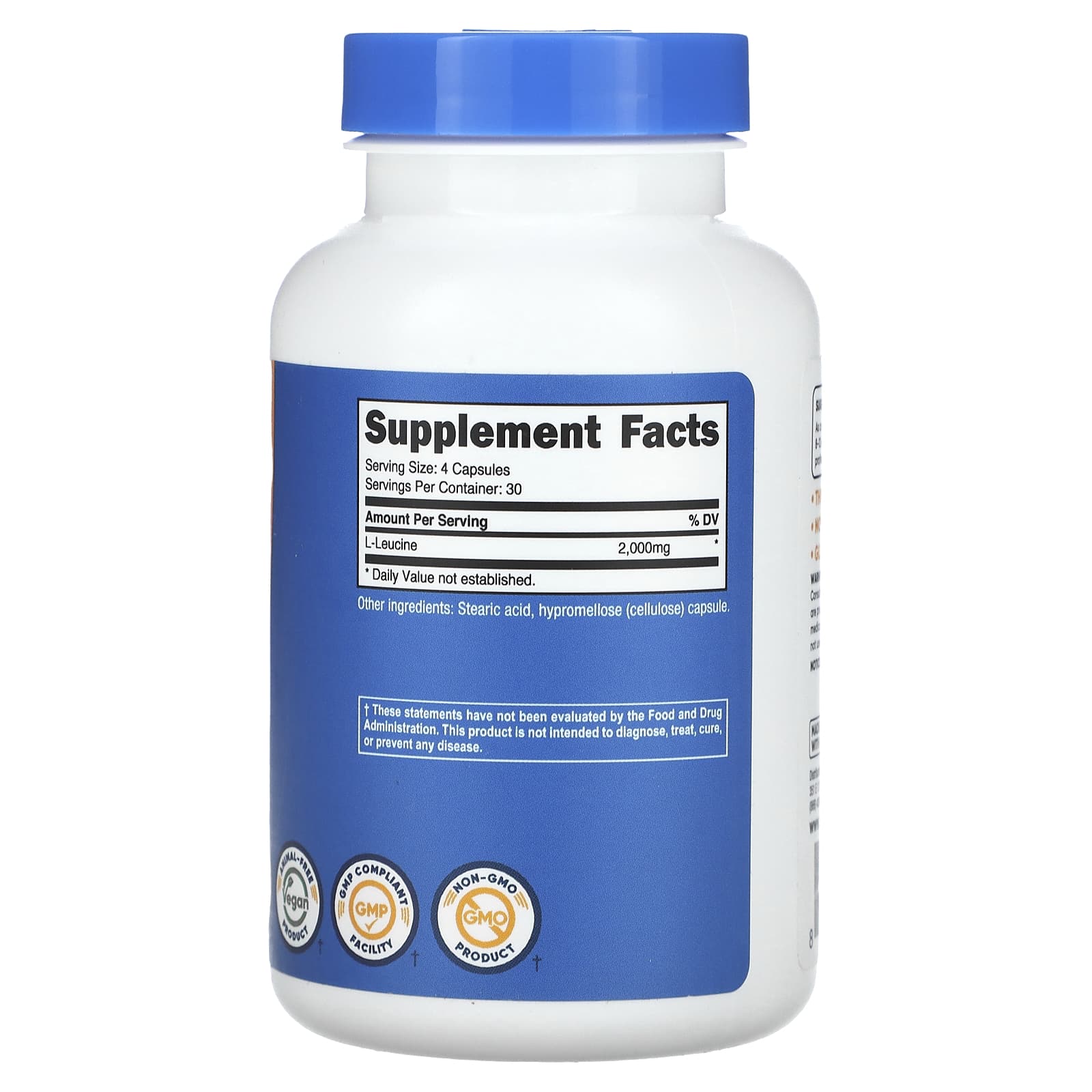 *Some information on the Nutricost, L-Leucine, 2,000 mg, 120 Capsules (500 mg per Capsule)label may be missing, or it may have been written incorrectly. We work hard to keep the information accurate & up to date. Please let us know if you discover any errors.