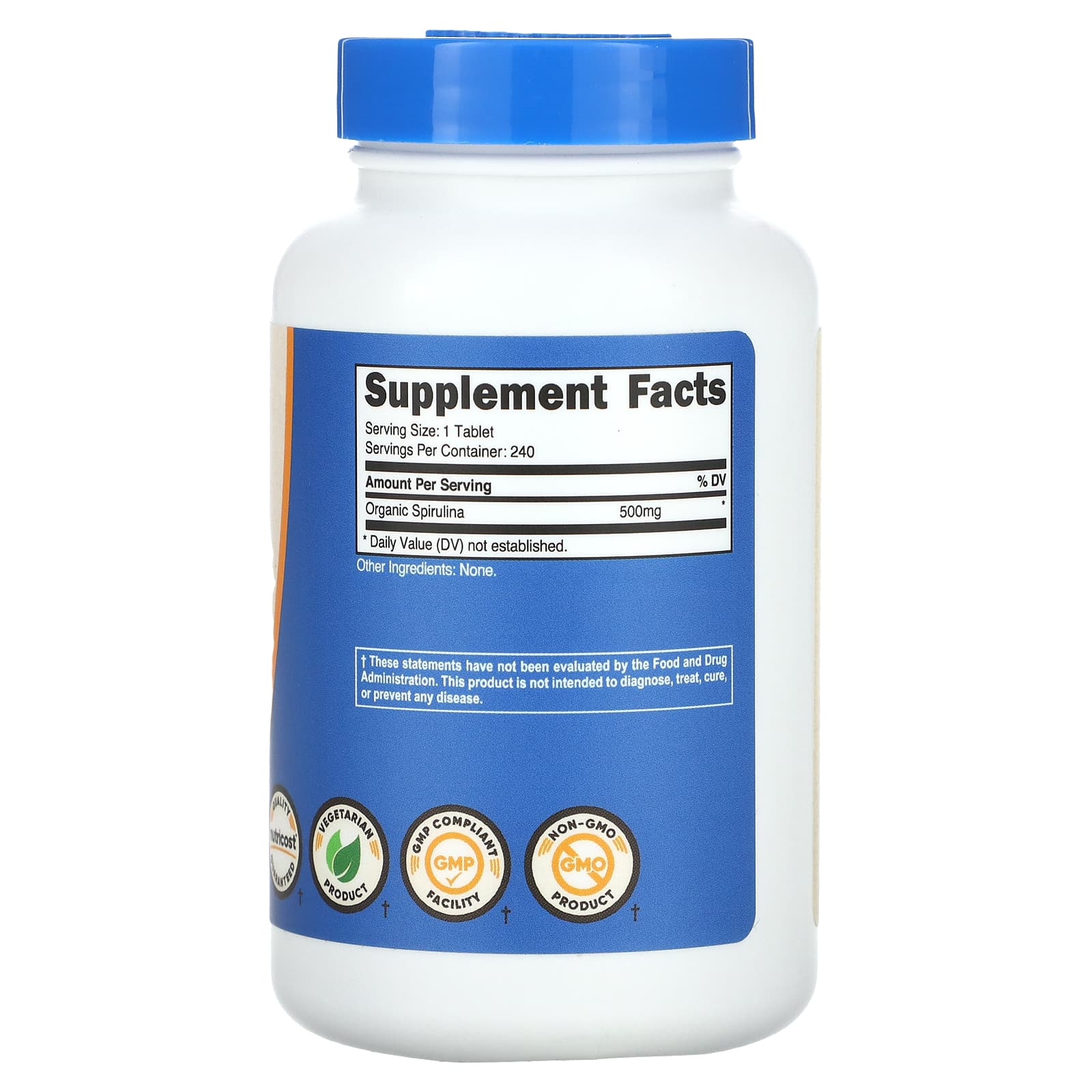 *Some information on the Nutricost, Organic Spirulina, 500 mg, 240 Tabletslabel may be missing, or it may have been written incorrectly. We work hard to keep the information accurate & up to date. Please let us know if you discover any errors.
