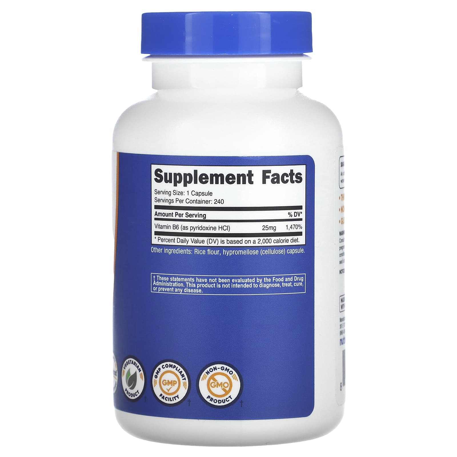 Nutricost, Vitamin B6, Pyridoxine HCl, 25 mg, 240 CapsulesSupplement Rating
