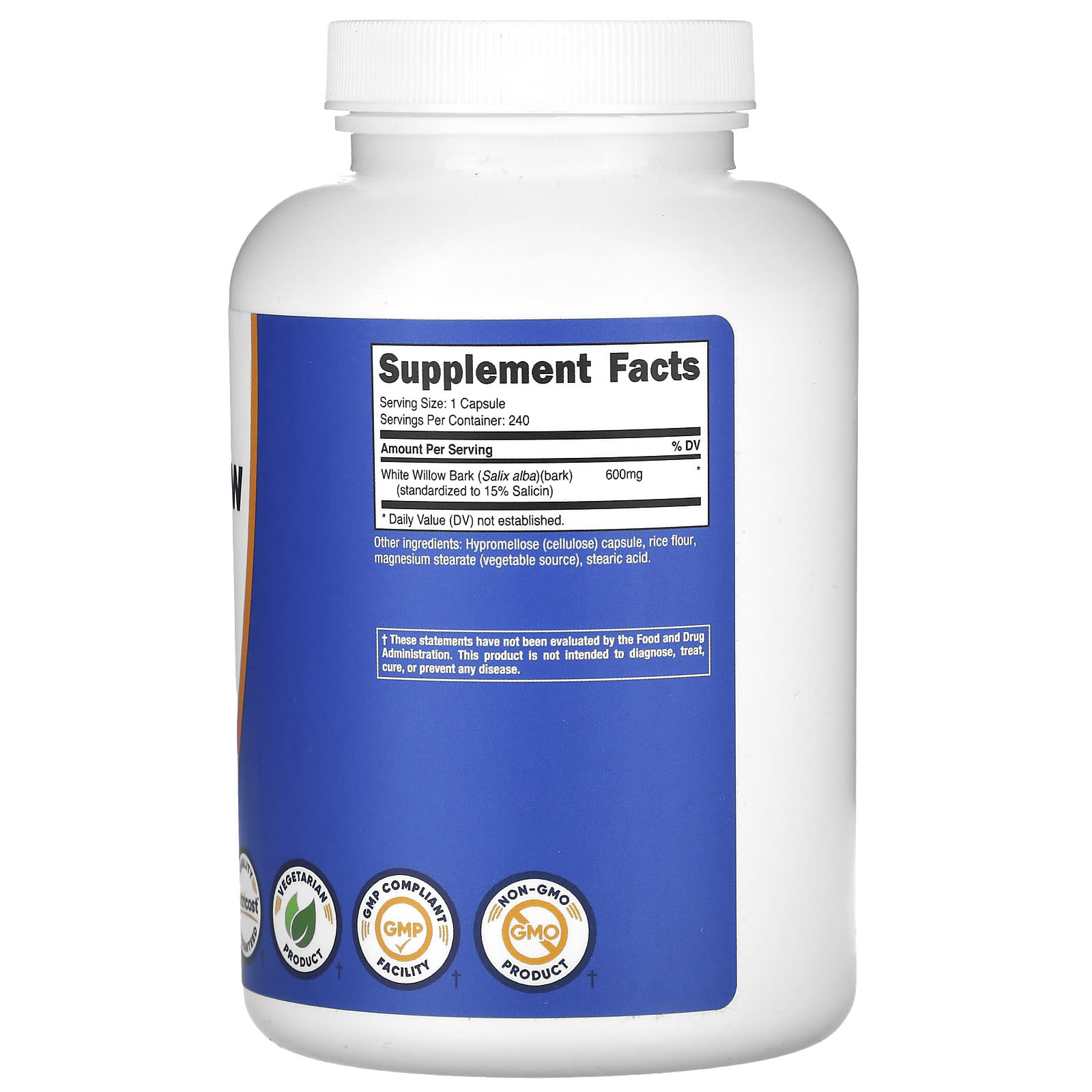 *Some information on the Nutricost, White Willow Bark, 600 mg, 240 Capsuleslabel may be missing, or it may have been written incorrectly. We work hard to keep the information accurate & up to date. Please let us know if you discover any errors.