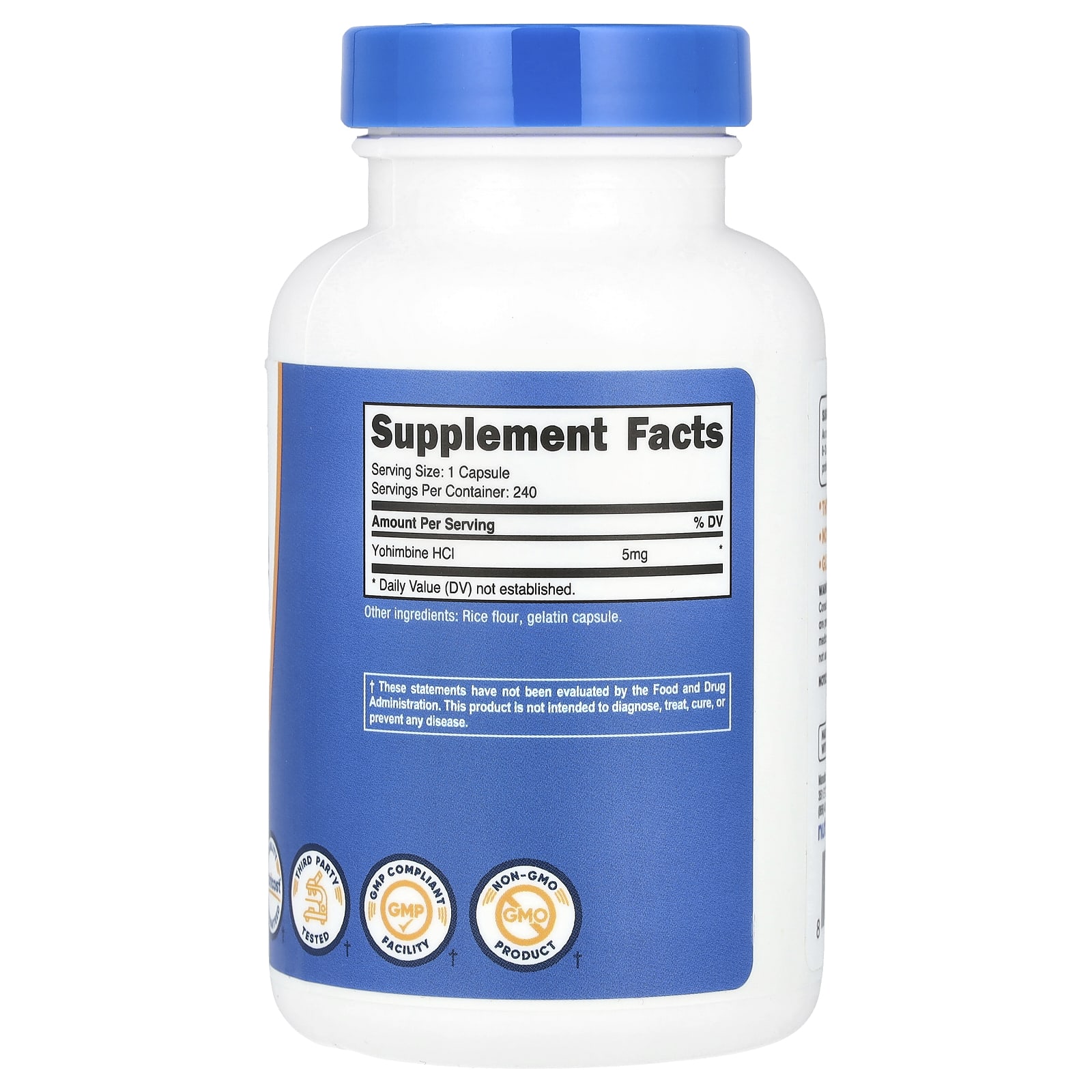 *Some information on the Nutricost, Yohimbine, 5 mg, 240 Capsuleslabel may be missing, or it may have been written incorrectly. We work hard to keep the information accurate & up to date. Please let us know if you discover any errors.