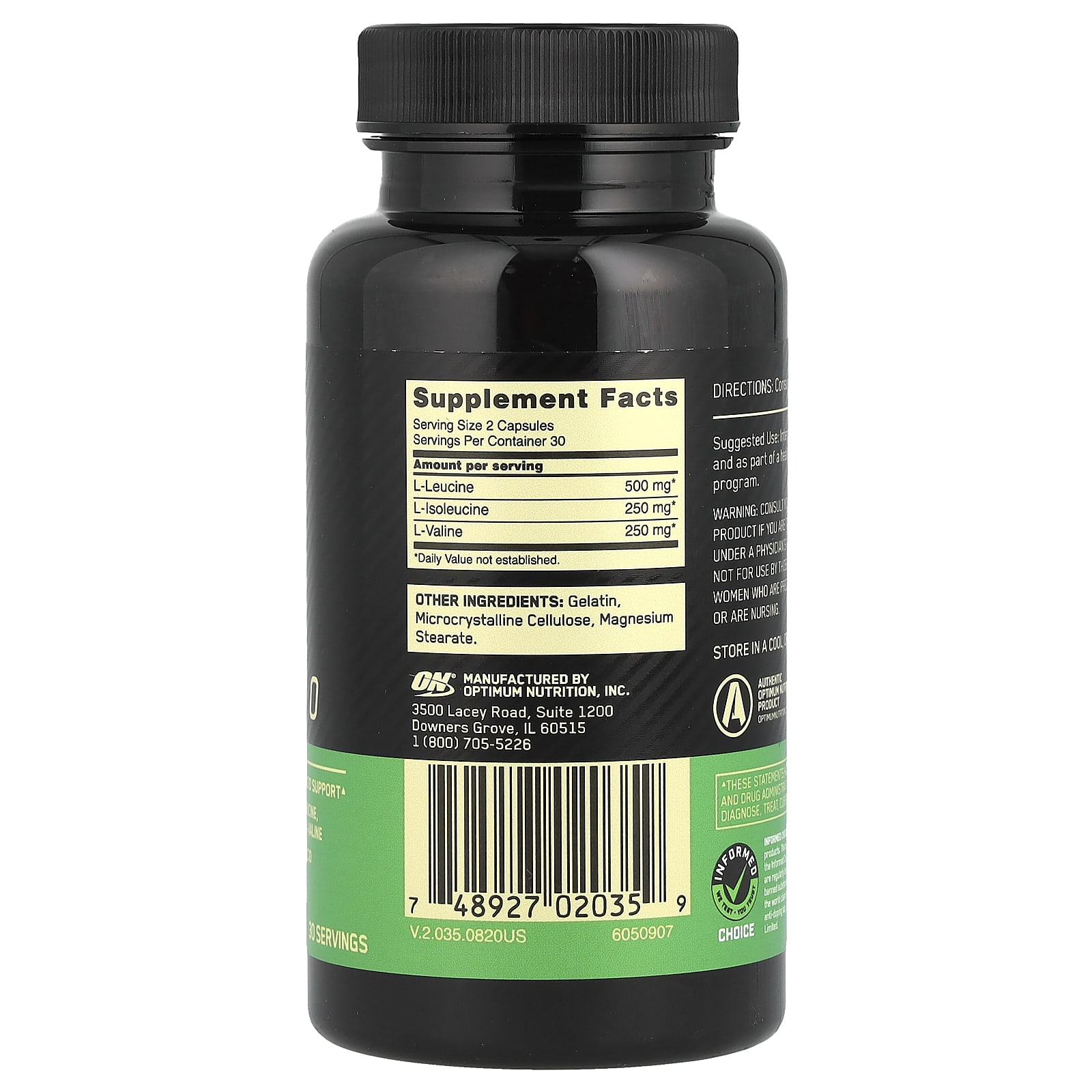 *Some information on the Optimum Nutrition, BCAA 1000, 1,000 mg, 60 Capsules (500 mg per Capsule)label may be missing, or it may have been written incorrectly. We work hard to keep the information accurate & up to date. Please let us know if you discover any errors.