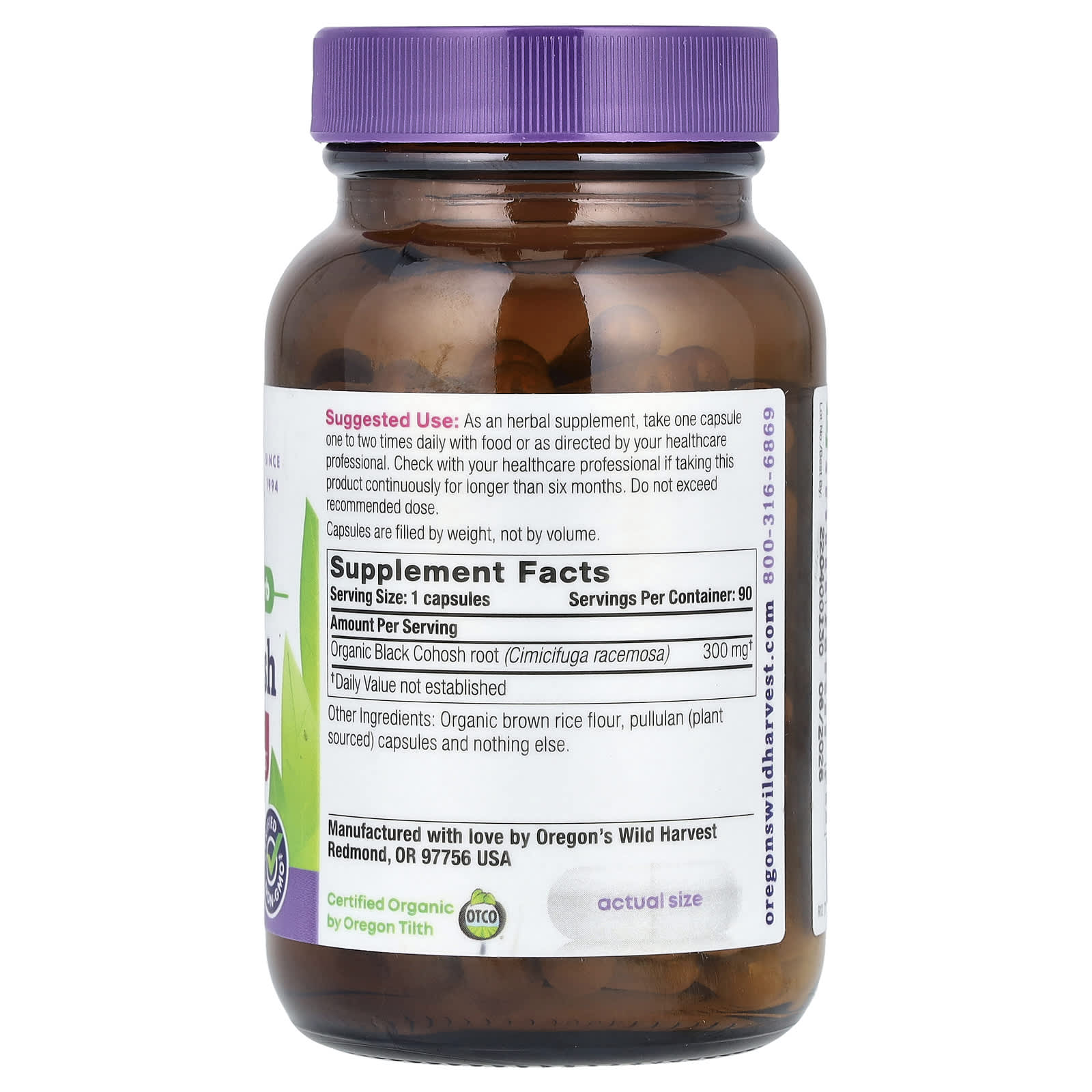 *Some information on the Oregon's Wild Harvest, Black Cohosh, 90 Vegan Capsuleslabel may be missing, or it may have been written incorrectly. We work hard to keep the information accurate & up to date. Please let us know if you discover any errors.