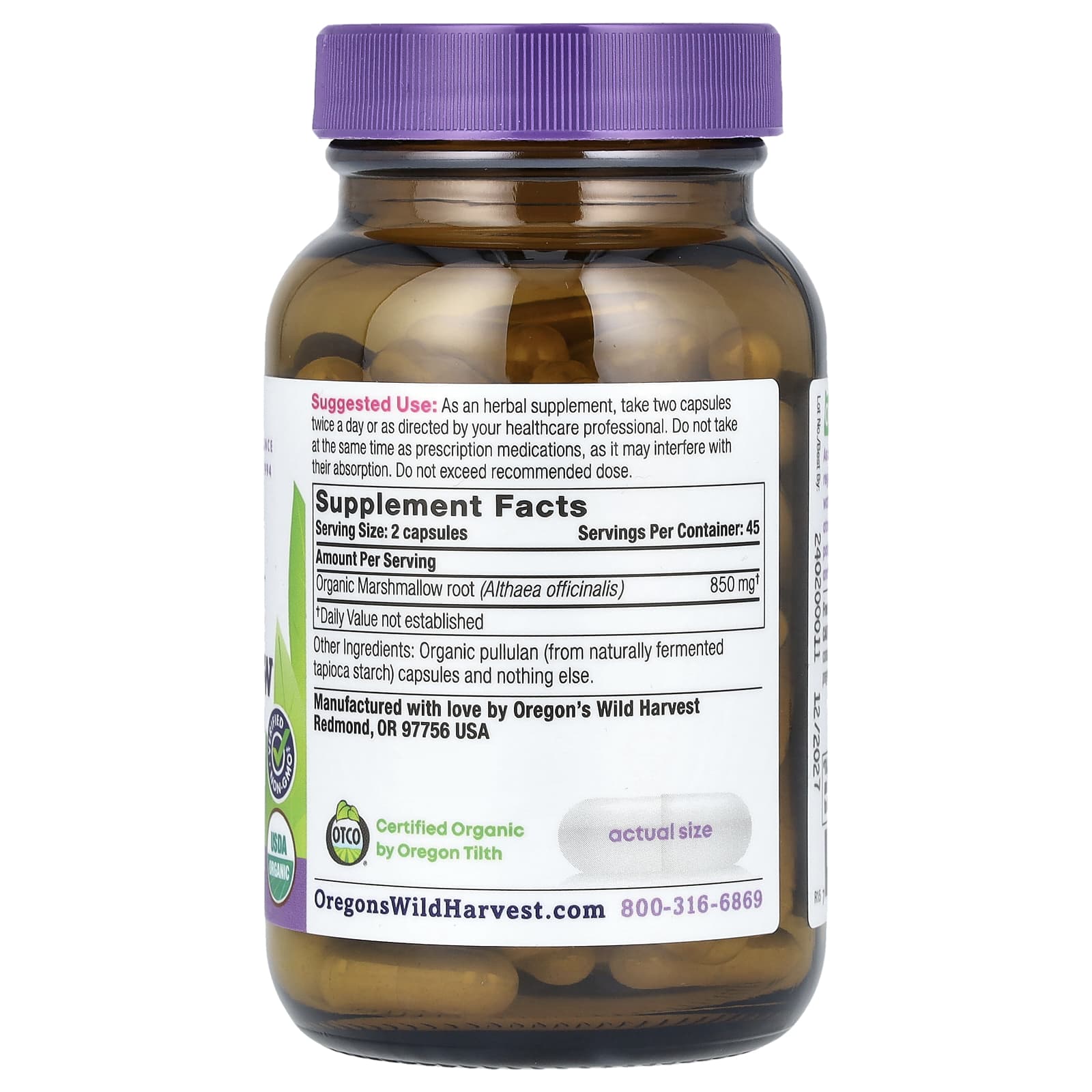 *Some information on the Oregon's Wild Harvest, Organic Marshmallow, 90 Organic Vegan Capsuleslabel may be missing, or it may have been written incorrectly. We work hard to keep the information accurate & up to date. Please let us know if you discover any errors.
