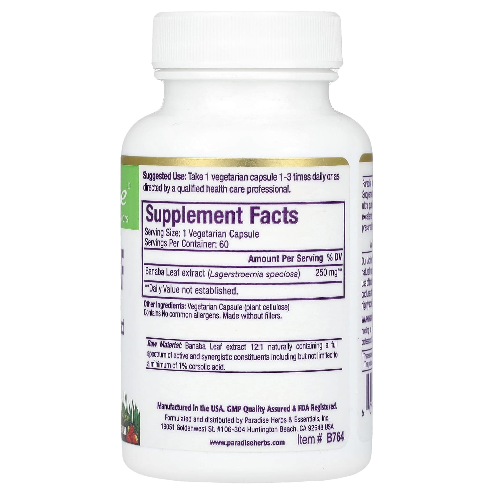 Paradise Herbs, Banaba Leaf, 60 Vegetarian CapsulesSupplement Rating
