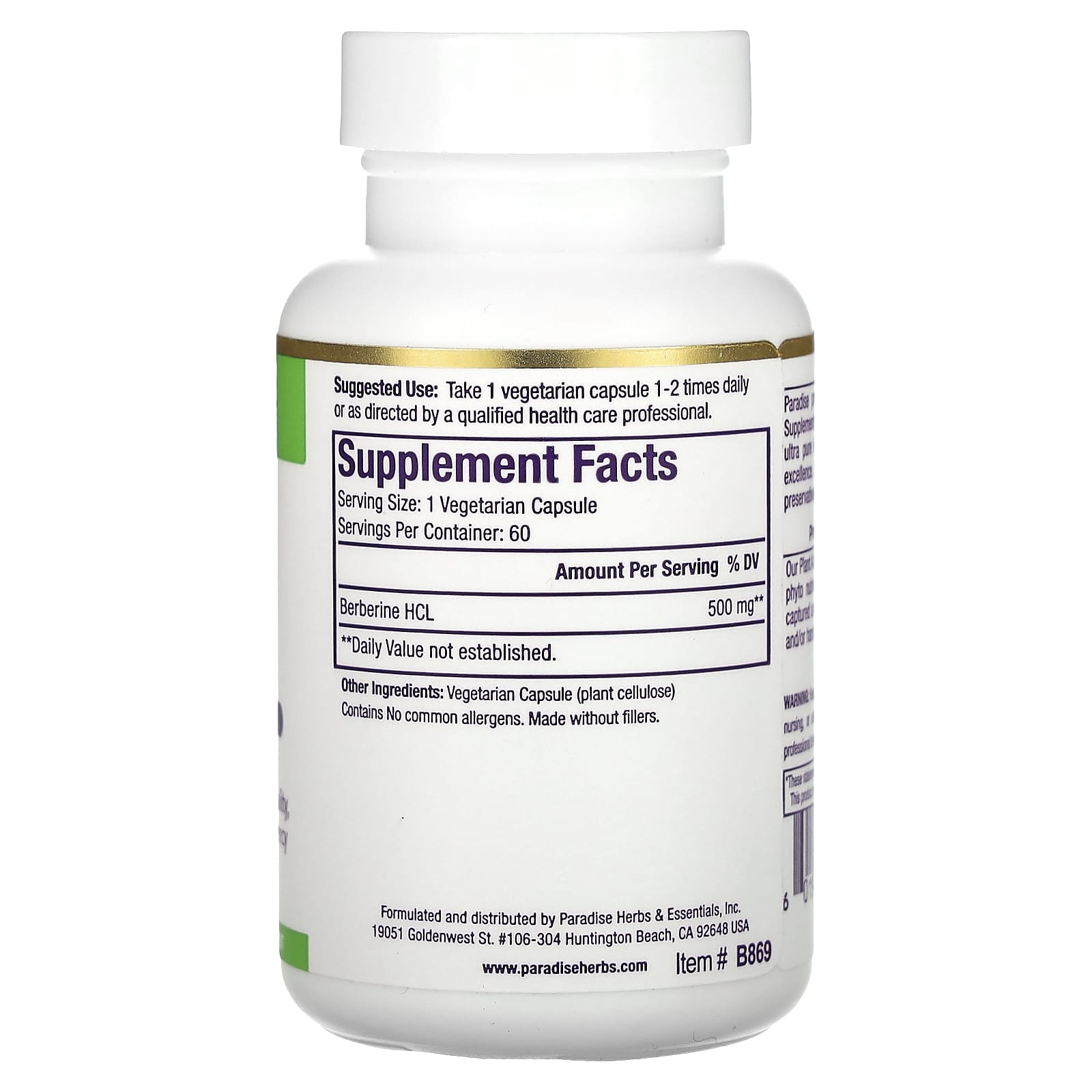 *Some information on the Paradise Herbs, Berberine Extract, 60 Vegetarian Capsuleslabel may be missing, or it may have been written incorrectly. We work hard to keep the information accurate & up to date. Please let us know if you discover any errors.