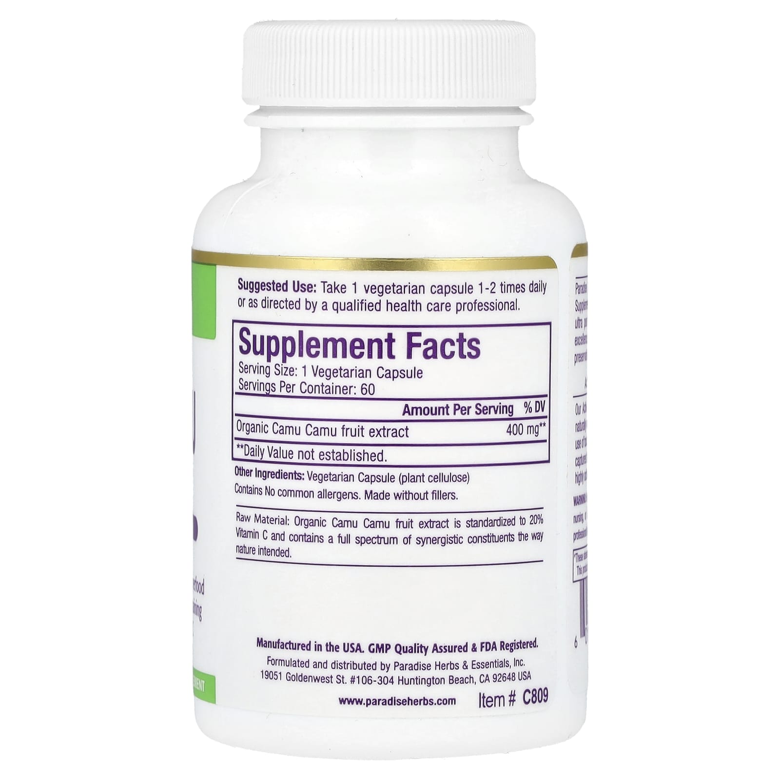 *Some information on the Paradise Herbs, Camu Camu Extract, 60 Vegetarian Capsuleslabel may be missing, or it may have been written incorrectly. We work hard to keep the information accurate & up to date. Please let us know if you discover any errors.