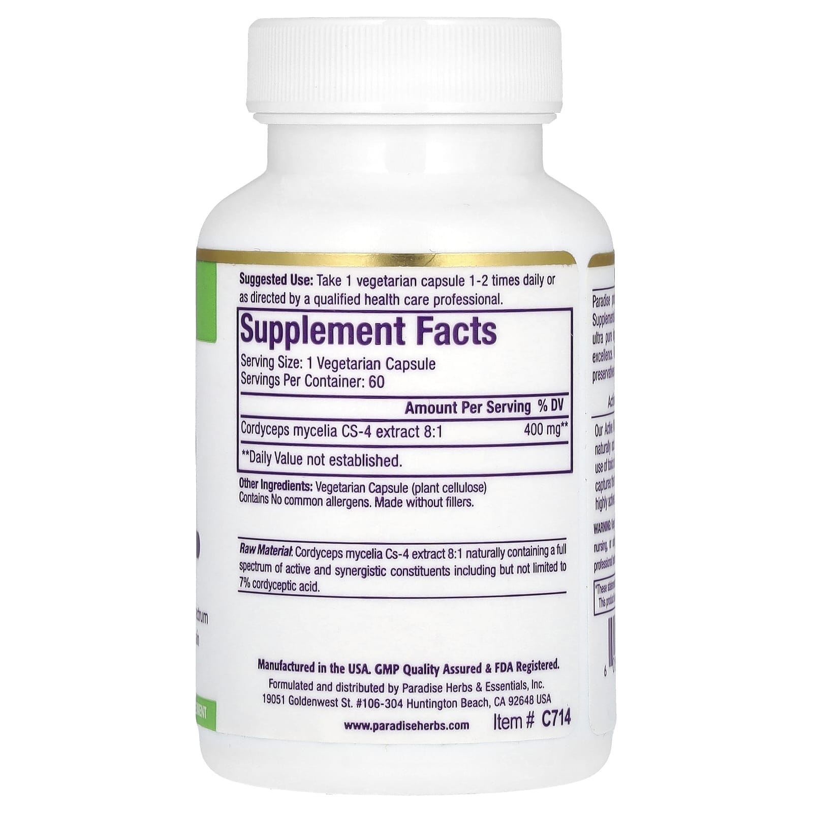 *Some information on the Paradise Herbs, Cordyceps Extract, 60 Vegetarian Capsuleslabel may be missing, or it may have been written incorrectly. We work hard to keep the information accurate & up to date. Please let us know if you discover any errors.