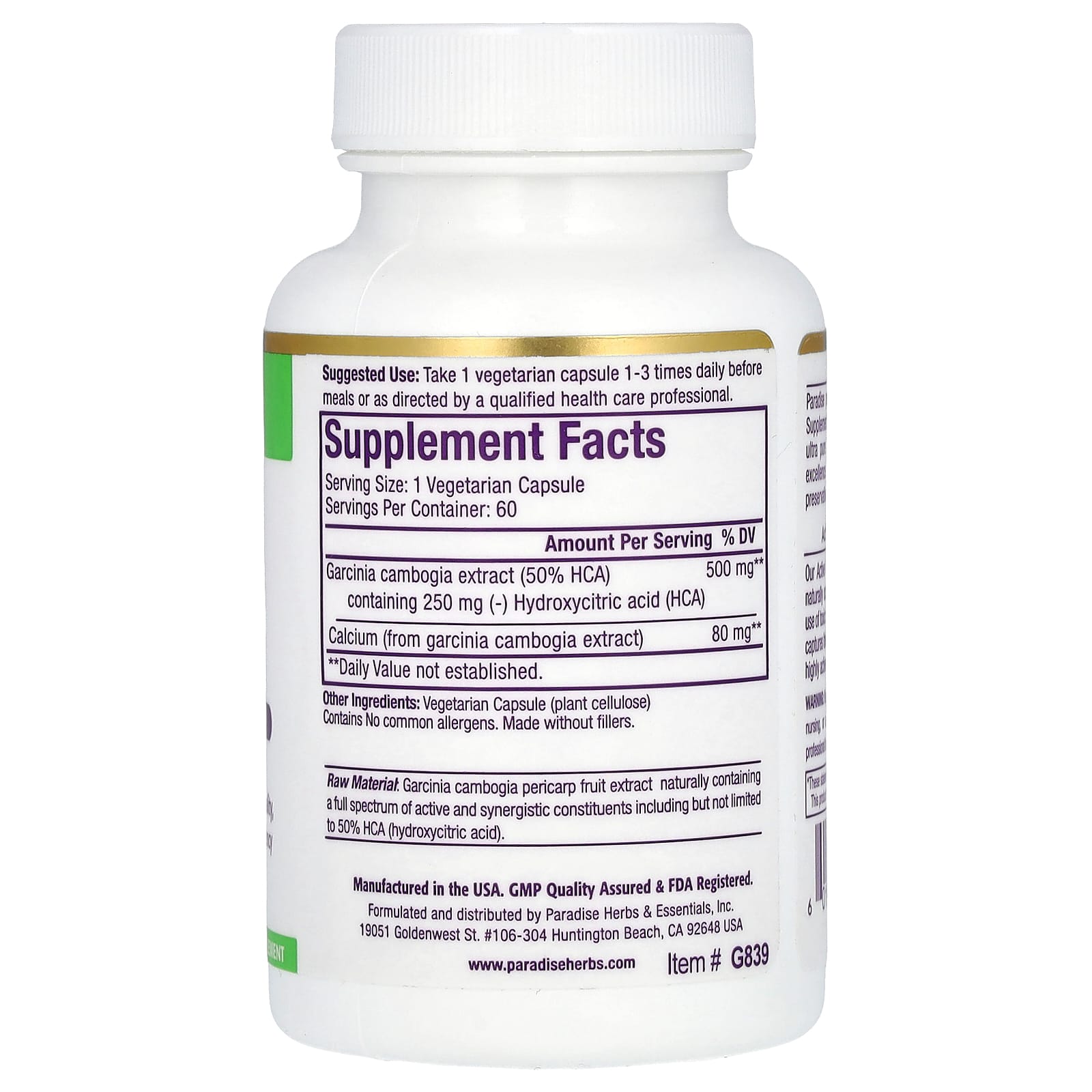*Some information on the Paradise Herbs, Garcinia Extract, 60 Vegetarian Capsuleslabel may be missing, or it may have been written incorrectly. We work hard to keep the information accurate & up to date. Please let us know if you discover any errors.
