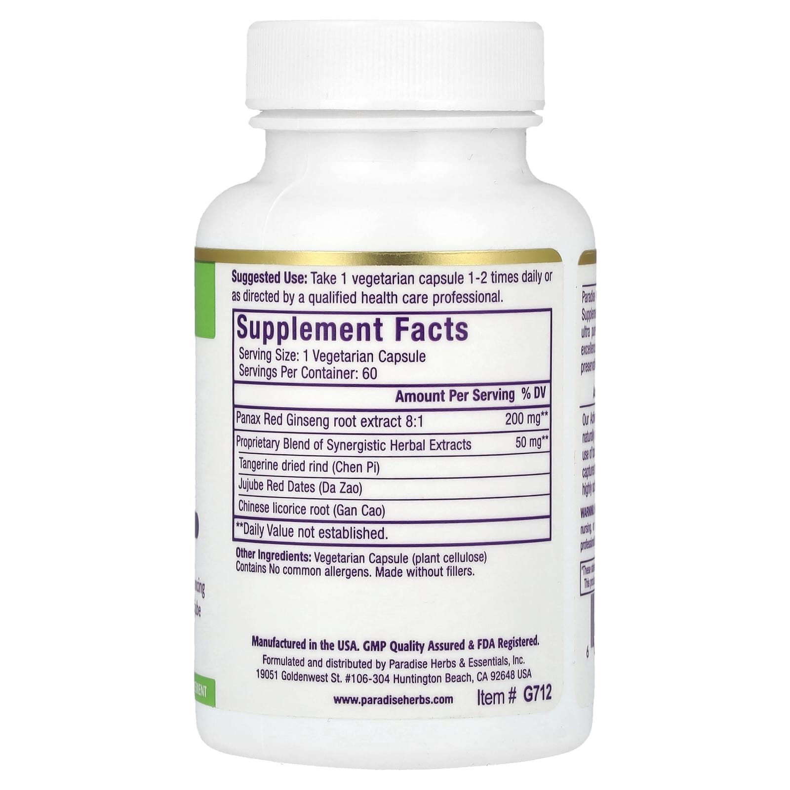 *Some information on the Paradise Herbs, Ginseng+ Extract, 60 Vegetarian Capsuleslabel may be missing, or it may have been written incorrectly. We work hard to keep the information accurate & up to date. Please let us know if you discover any errors.