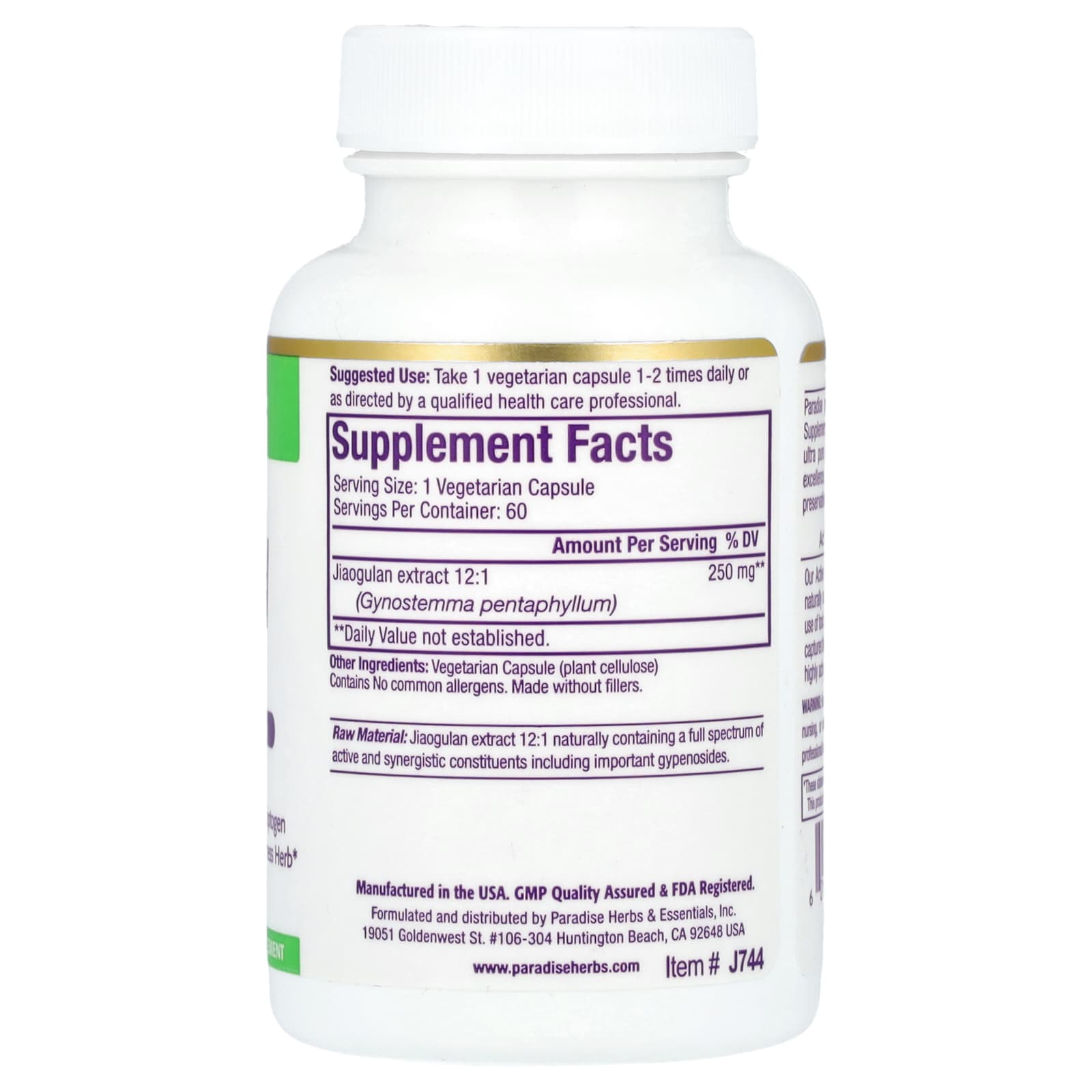 *Some information on the Paradise Herbs, Jiaogulan Extract , 60 Vegetarian Capsuleslabel may be missing, or it may have been written incorrectly. We work hard to keep the information accurate & up to date. Please let us know if you discover any errors.