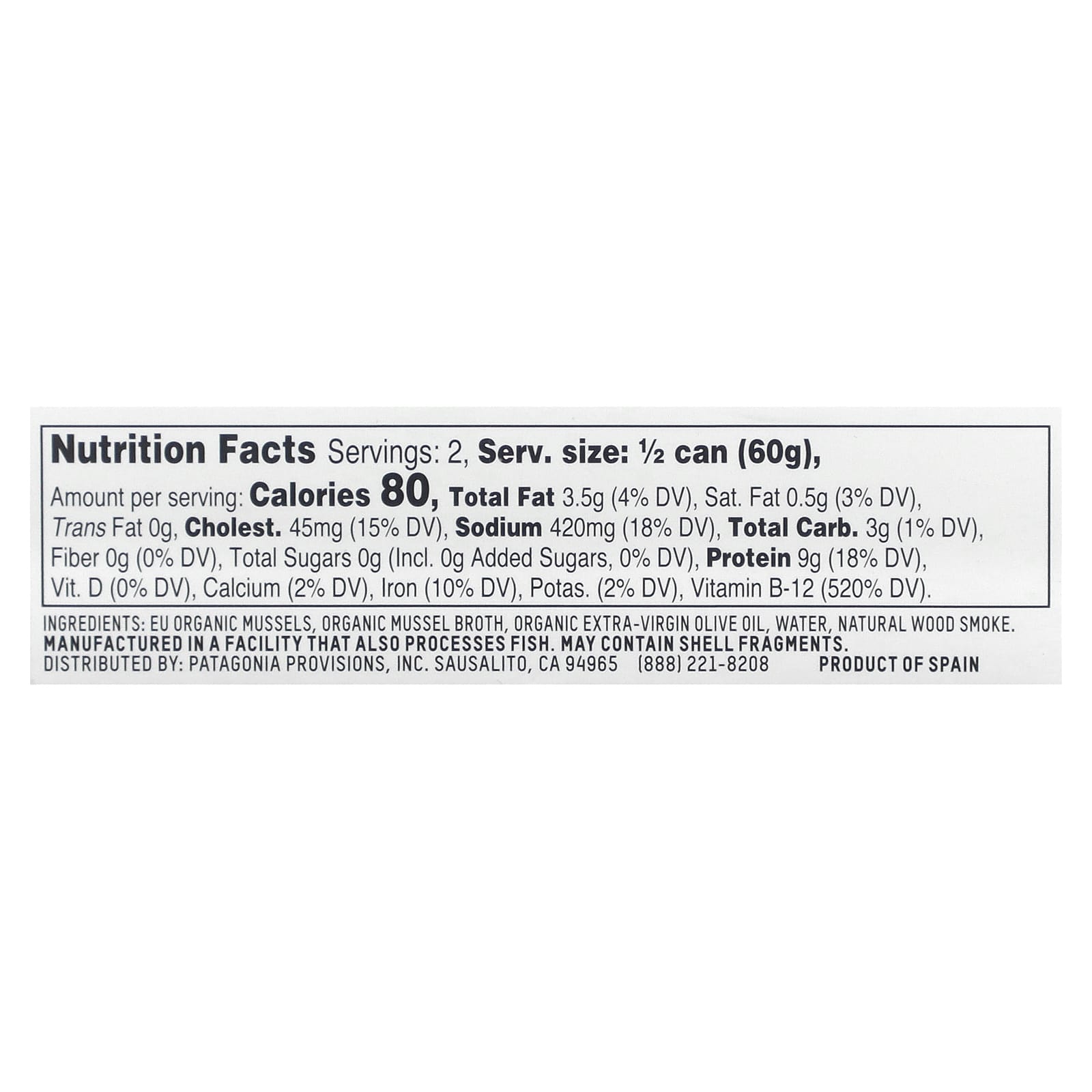 *Some information on the Patagonia Provisions, Smoked Mussels in Organic Extra-Virgin Olive Oil + Broth, 4.2 oz (120 g)label may be missing, or it may have been written incorrectly. We work hard to keep the information accurate & up to date. Please let us know if you discover any errors.