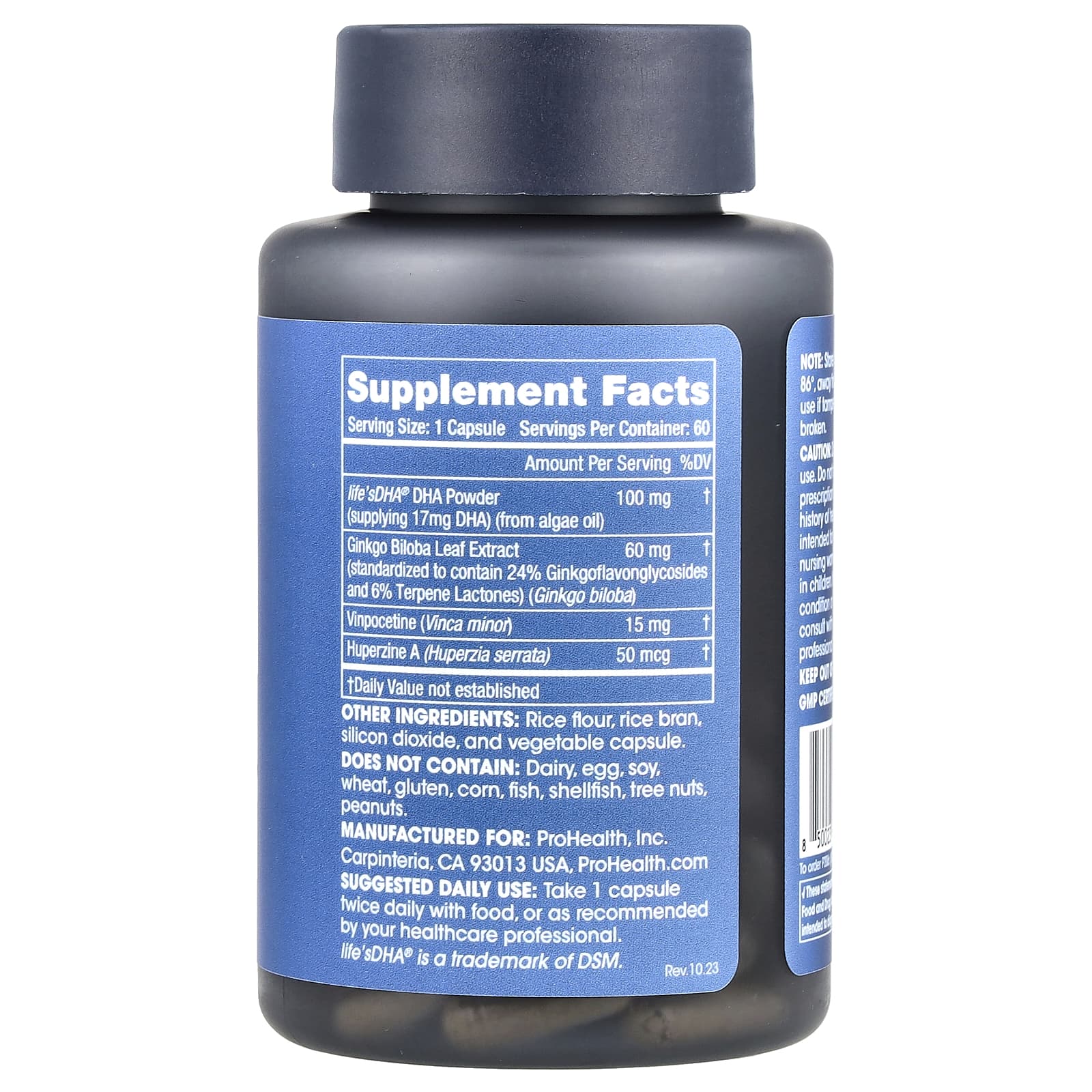 *Some information on the ProHealth Longevity, Think Clear, 60 Capslabel may be missing, or it may have been written incorrectly. We work hard to keep the information accurate & up to date. Please let us know if you discover any errors.