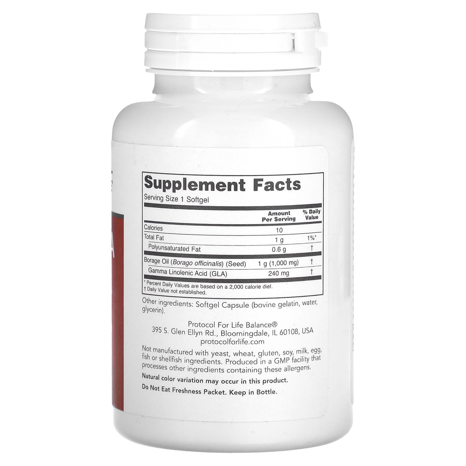 *Some information on the Protocol for Life Balance, Borage/GLA, 1,000 mg, 60 Softgelslabel may be missing, or it may have been written incorrectly. We work hard to keep the information accurate & up to date. Please let us know if you discover any errors.