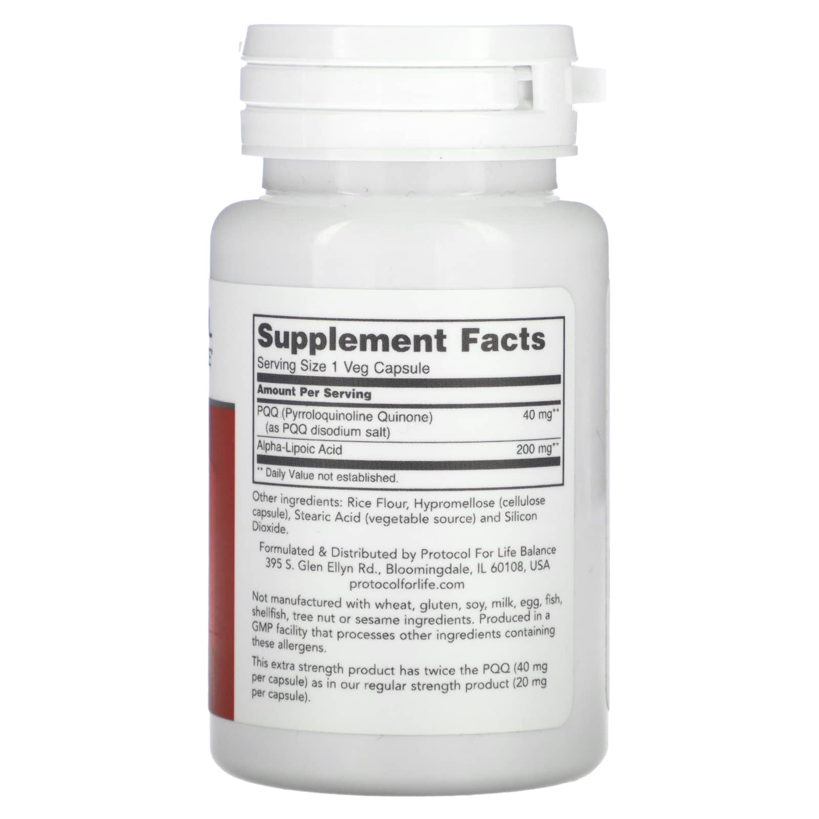 *Some information on the Protocol for Life Balance, PQQ, Extra Strength, 40 mg, 50 Veg Capsuleslabel may be missing, or it may have been written incorrectly. We work hard to keep the information accurate & up to date. Please let us know if you discover any errors.
