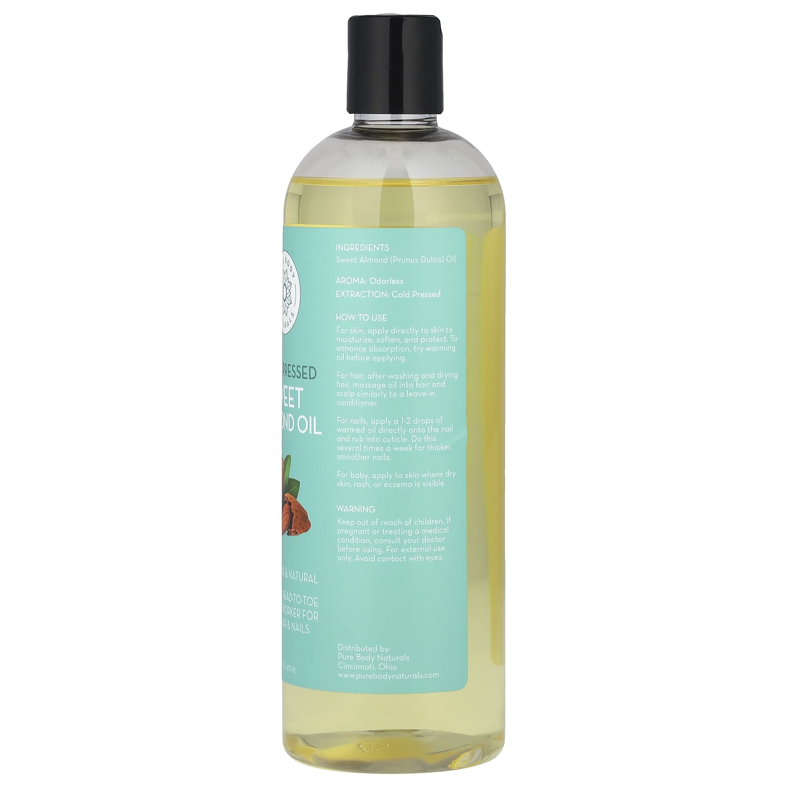 *Some information on the Pure Body Naturals, Sweet Almond Oil, 16 fl oz (473 ml)label may be missing, or it may have been written incorrectly. We work hard to keep the information accurate & up to date. Please let us know if you discover any errors.