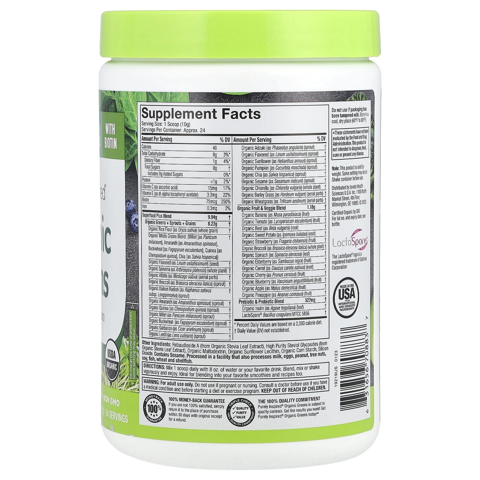 *Some information on the Purely Inspired, Organic Greens with Superfood Blend, Unflavored, 8.54 oz (242 g)label may be missing, or it may have been written incorrectly. We work hard to keep the information accurate & up to date. Please let us know if you discover any errors.