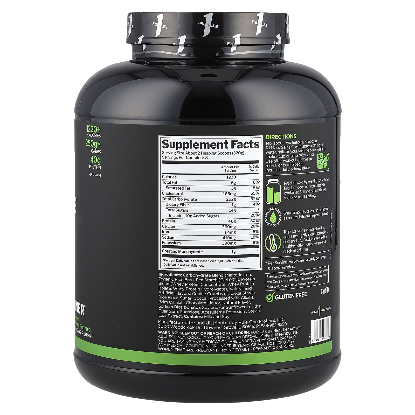 *Some information on the Rule One Proteins, Mass Gainer™, Cookies & Creme, 5.64 lb (2.56 kg)label may be missing, or it may have been written incorrectly. We work hard to keep the information accurate & up to date. Please let us know if you discover any errors.