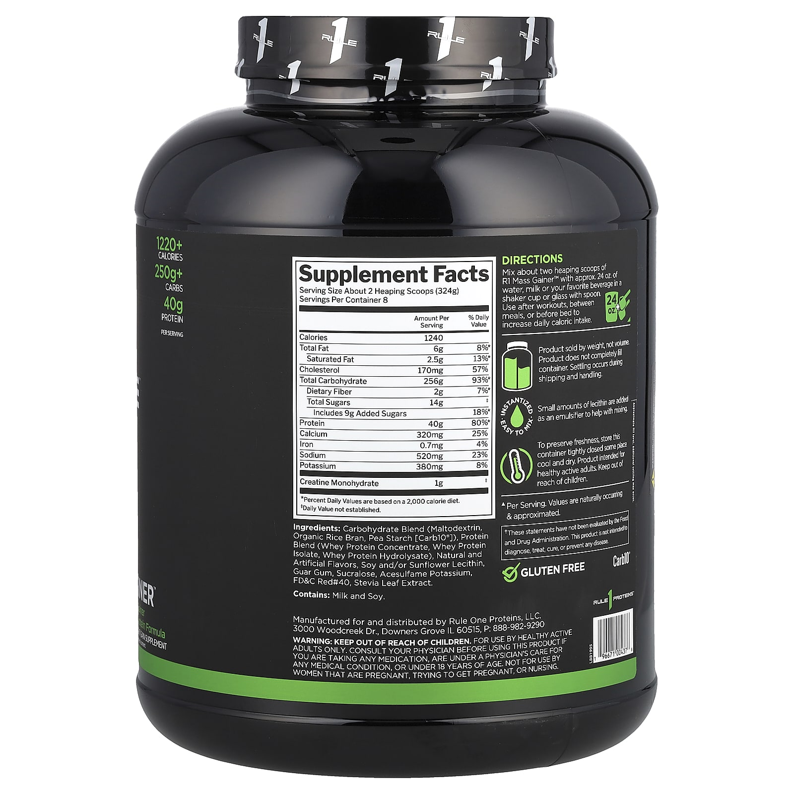 *Some information on the Rule One Proteins, Mass Gainer™, Strawberries & Creme, 5.71 lb (2.59 kg)label may be missing, or it may have been written incorrectly. We work hard to keep the information accurate & up to date. Please let us know if you discover any errors.