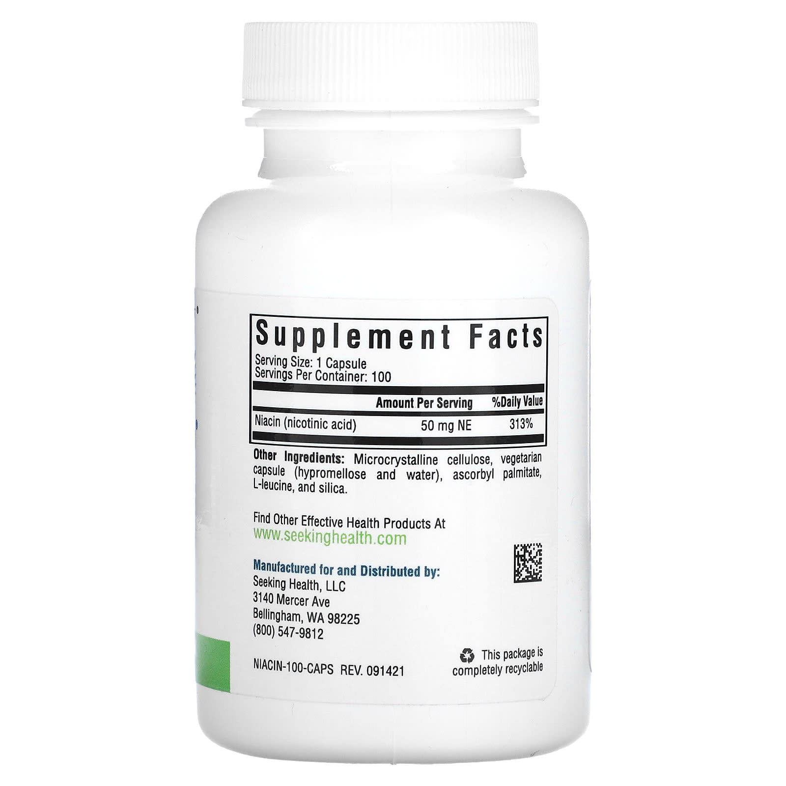 *Some information on the Seeking Health, Niacin, 50 mg NE, 100 Vegetarian Capsuleslabel may be missing, or it may have been written incorrectly. We work hard to keep the information accurate & up to date. Please let us know if you discover any errors.
