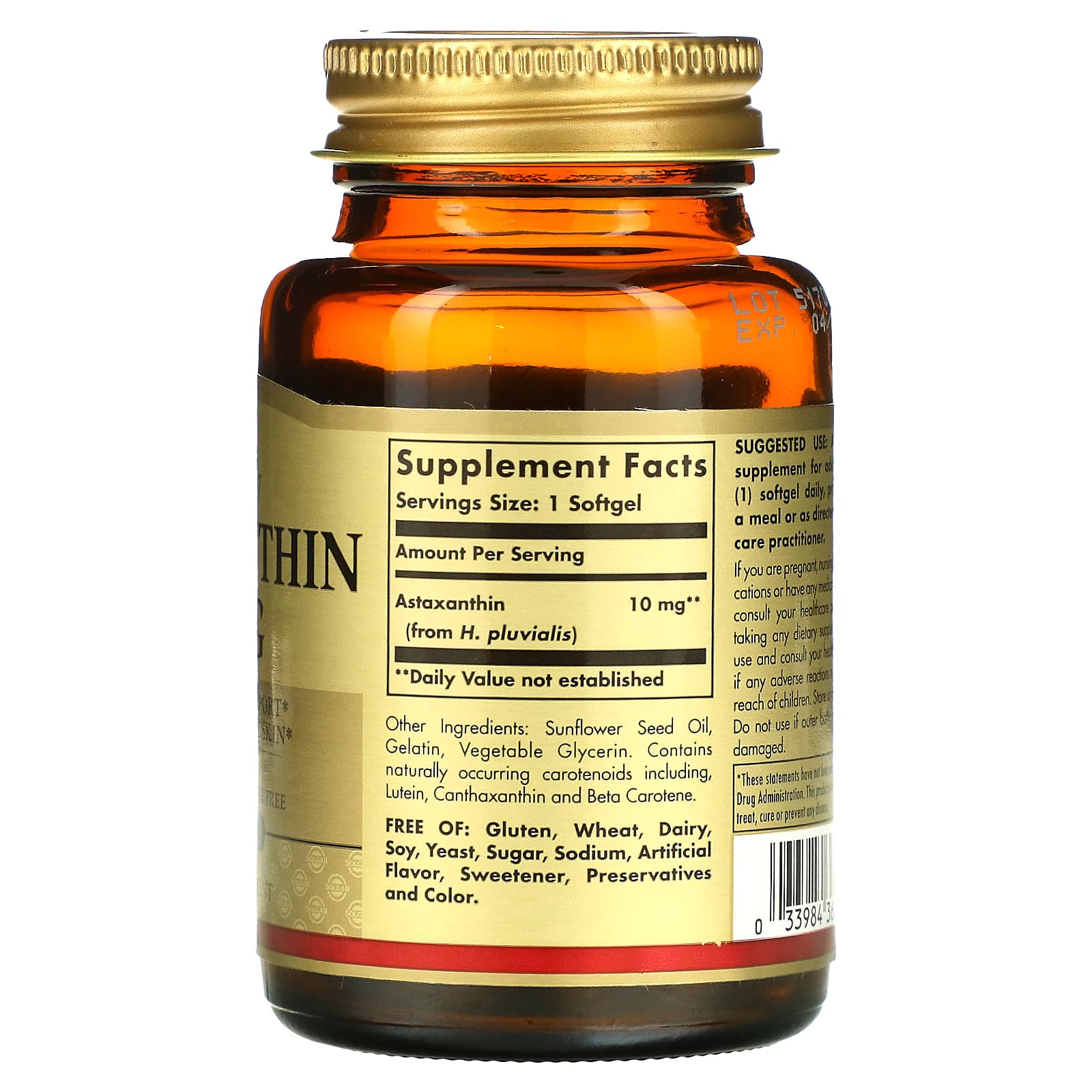 *Some information on the Solgar, Astaxanthin, 10 mg, 30 Softgelslabel may be missing, or it may have been written incorrectly. We work hard to keep the information accurate & up to date. Please let us know if you discover any errors.