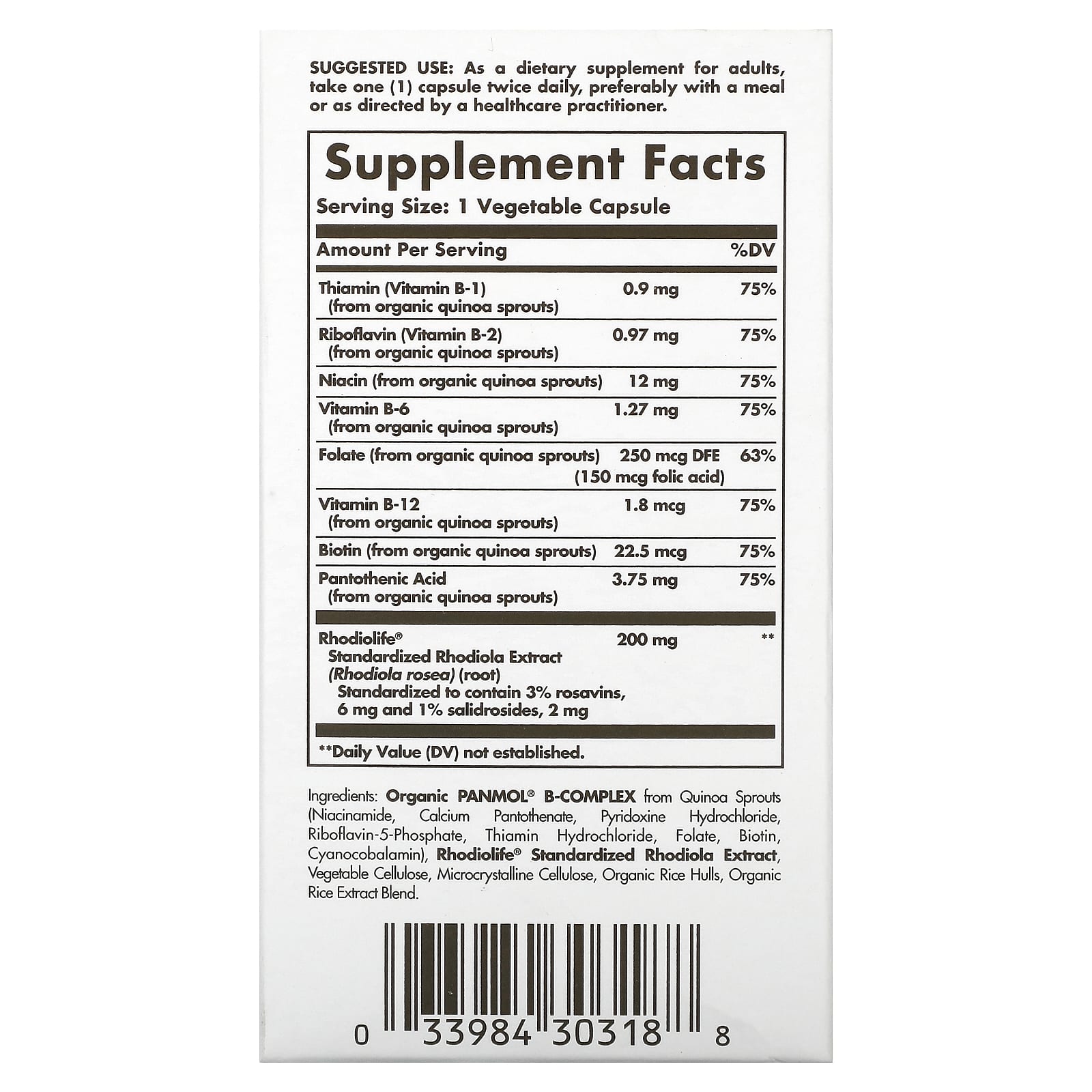 *Some information on the Solgar, Daily Stress Support, Rhodiola & B-Complex, 60 Vegetable Capsuleslabel may be missing, or it may have been written incorrectly. We work hard to keep the information accurate & up to date. Please let us know if you discover any errors.