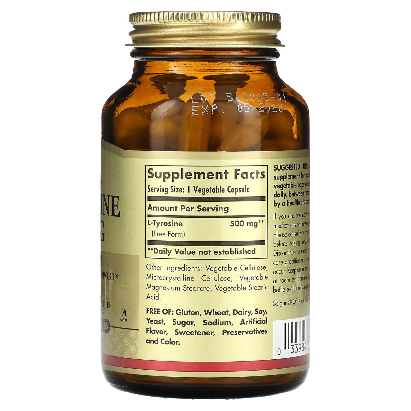 *Some information on the Solgar, L-Tyrosine, 500 mg, 100 Vegetable Capsuleslabel may be missing, or it may have been written incorrectly. We work hard to keep the information accurate & up to date. Please let us know if you discover any errors.