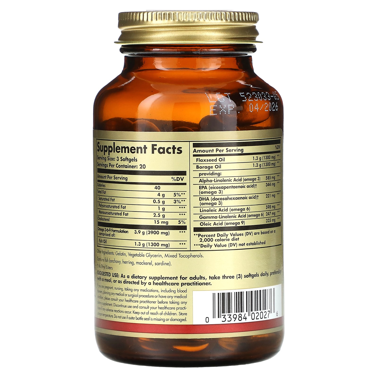 *Some information on the Solgar, Omega 3-6-9, 1,300 mg, 60 Softgelslabel may be missing, or it may have been written incorrectly. We work hard to keep the information accurate & up to date. Please let us know if you discover any errors.