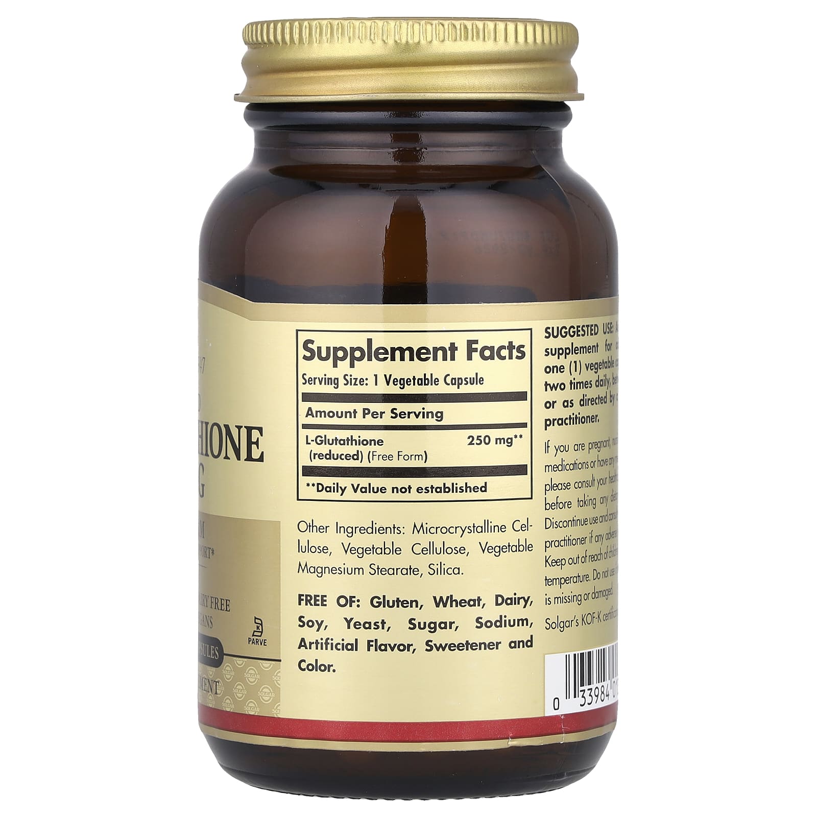 *Some information on the Solgar, Reduced L-Glutathione, 250 mg, 60 Vegetable Capsuleslabel may be missing, or it may have been written incorrectly. We work hard to keep the information accurate & up to date. Please let us know if you discover any errors.