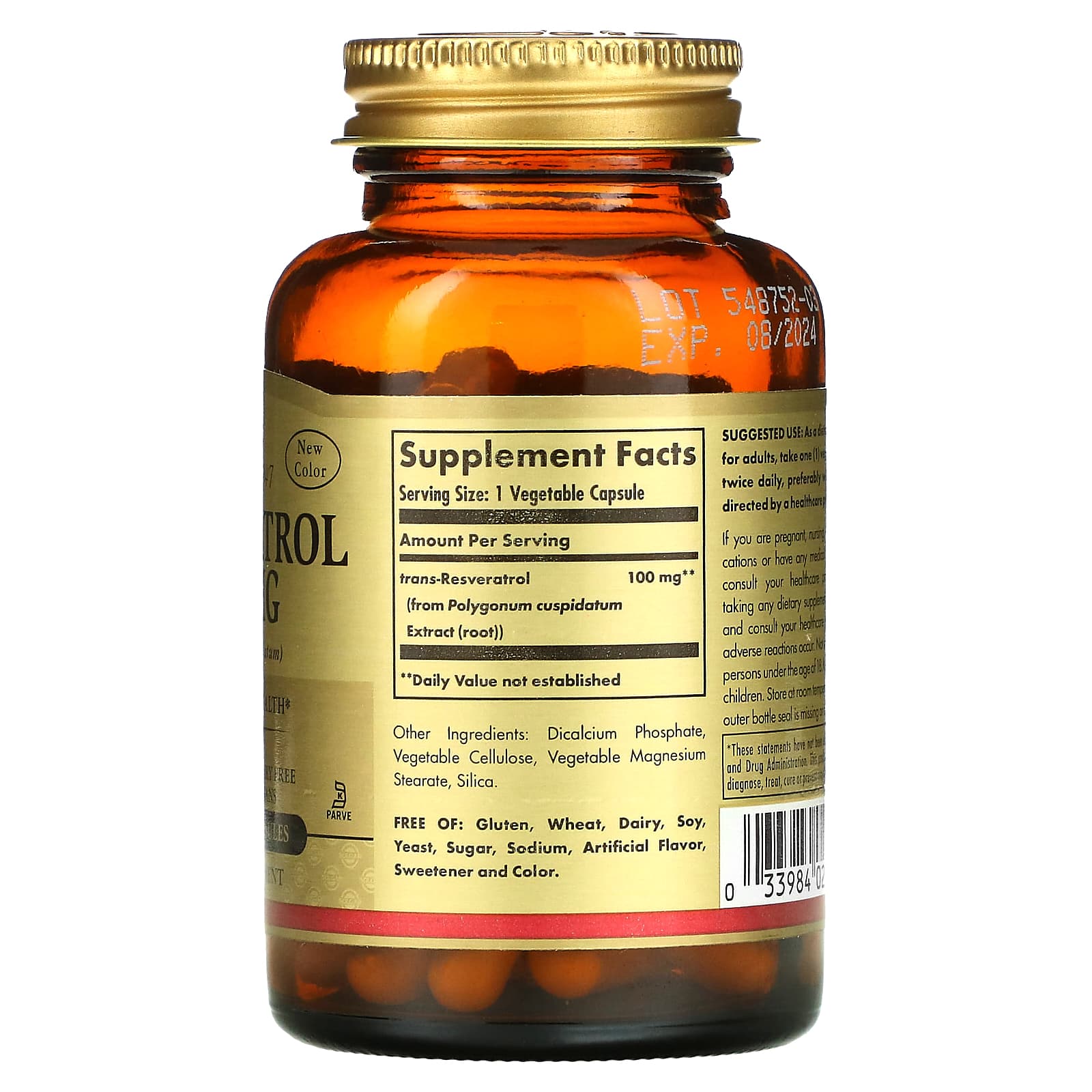 *Some information on the Solgar, Resveratrol, 100 mg, 60 Vegetable Capsuleslabel may be missing, or it may have been written incorrectly. We work hard to keep the information accurate & up to date. Please let us know if you discover any errors.