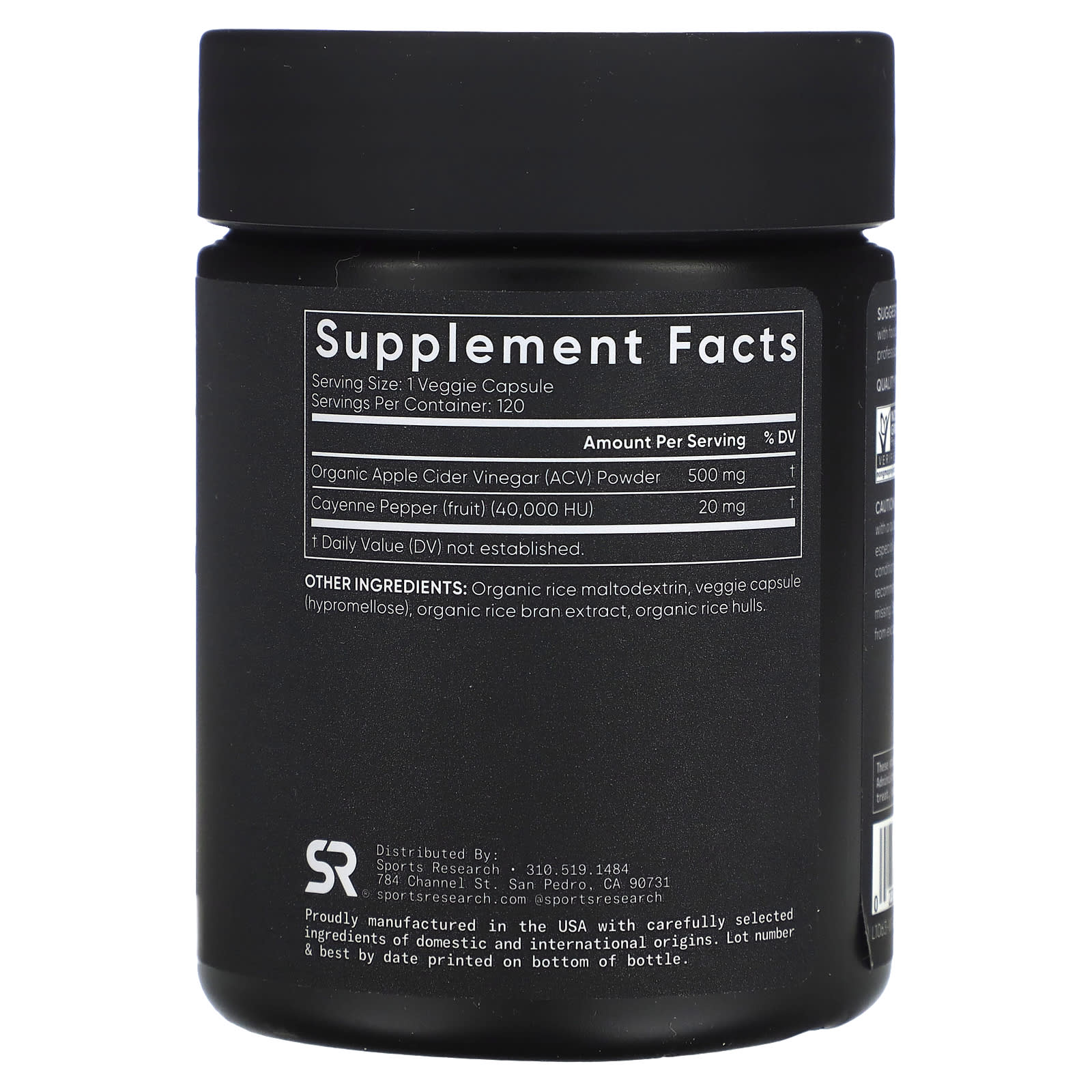 *Some information on the Sports Research, Apple Cider Vinegar, 120 Veggie Capsuleslabel may be missing, or it may have been written incorrectly. We work hard to keep the information accurate & up to date. Please let us know if you discover any errors.