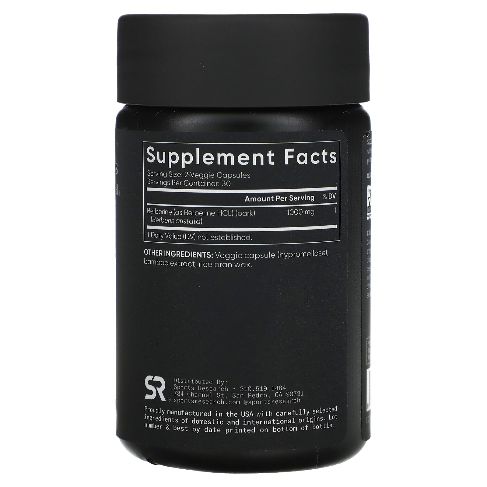 *Some information on the Sports Research, Berberine, 1,000 mg, 60 Veggie Capsules (500 mg per Capsule)label may be missing, or it may have been written incorrectly. We work hard to keep the information accurate & up to date. Please let us know if you discover any errors.